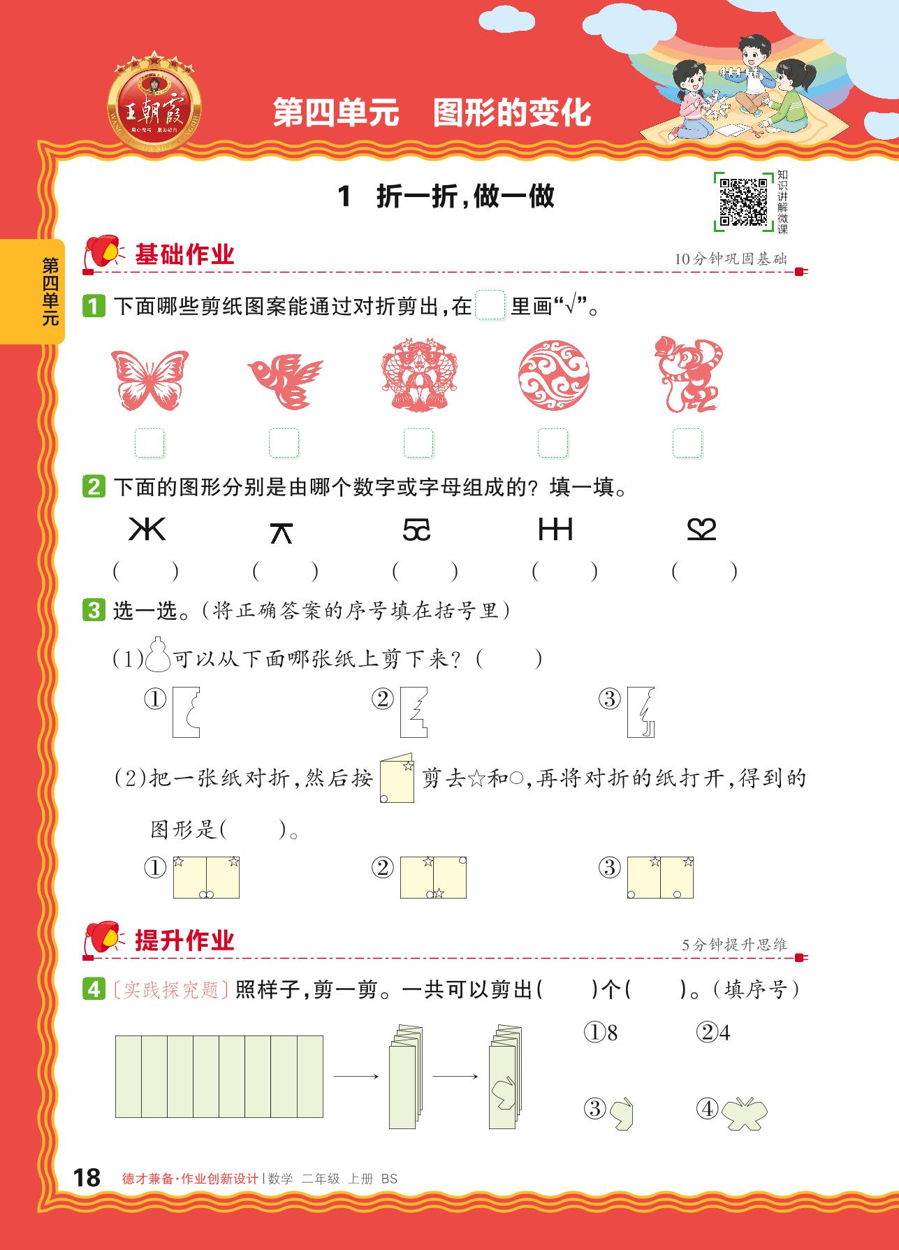 2024秋上册二年级数学北师版 第四单元 图形的变化——1. 折一折,做一做_R240819141844760
