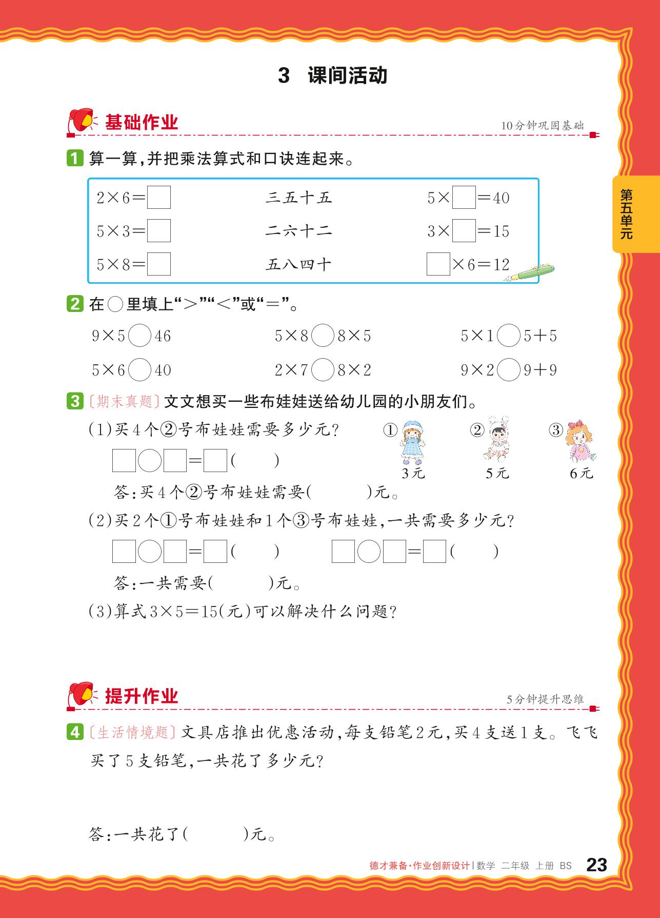 2024秋上册二年级数学北师版 第五单元 2~5的乘法口诀——3. 课间活动_R240819141846929