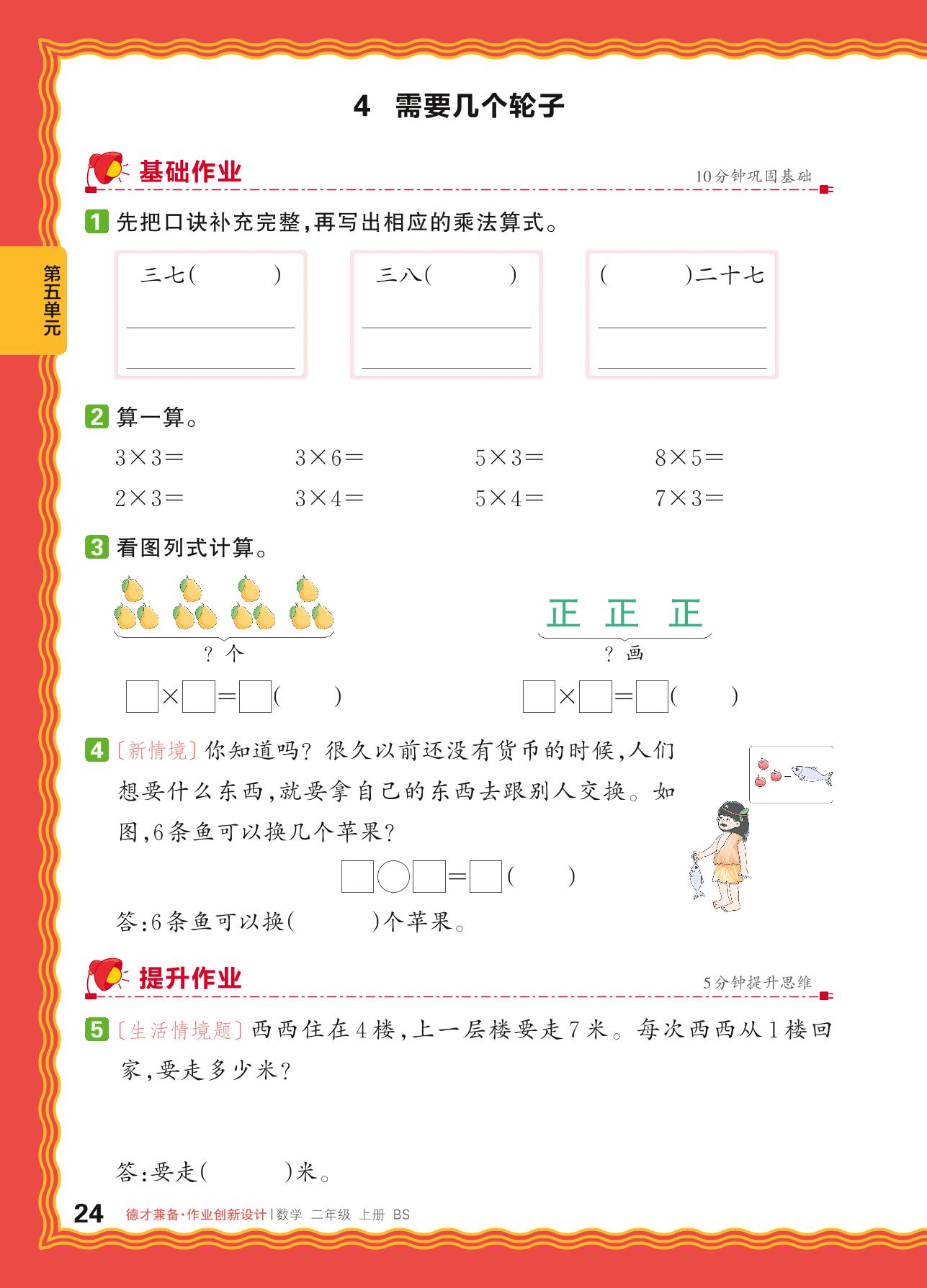 2024秋上册二年级数学北师版 第五单元 2~5的乘法口诀——4. 需要几个轮子_R240819141848213