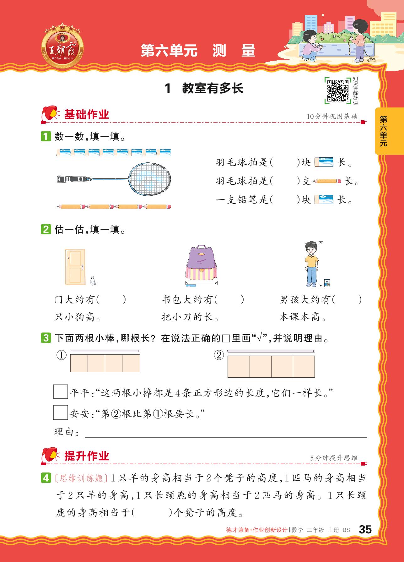 2024秋上册二年级数学北师版 第六单元 测量——1. 教室有多长_R240819141850431