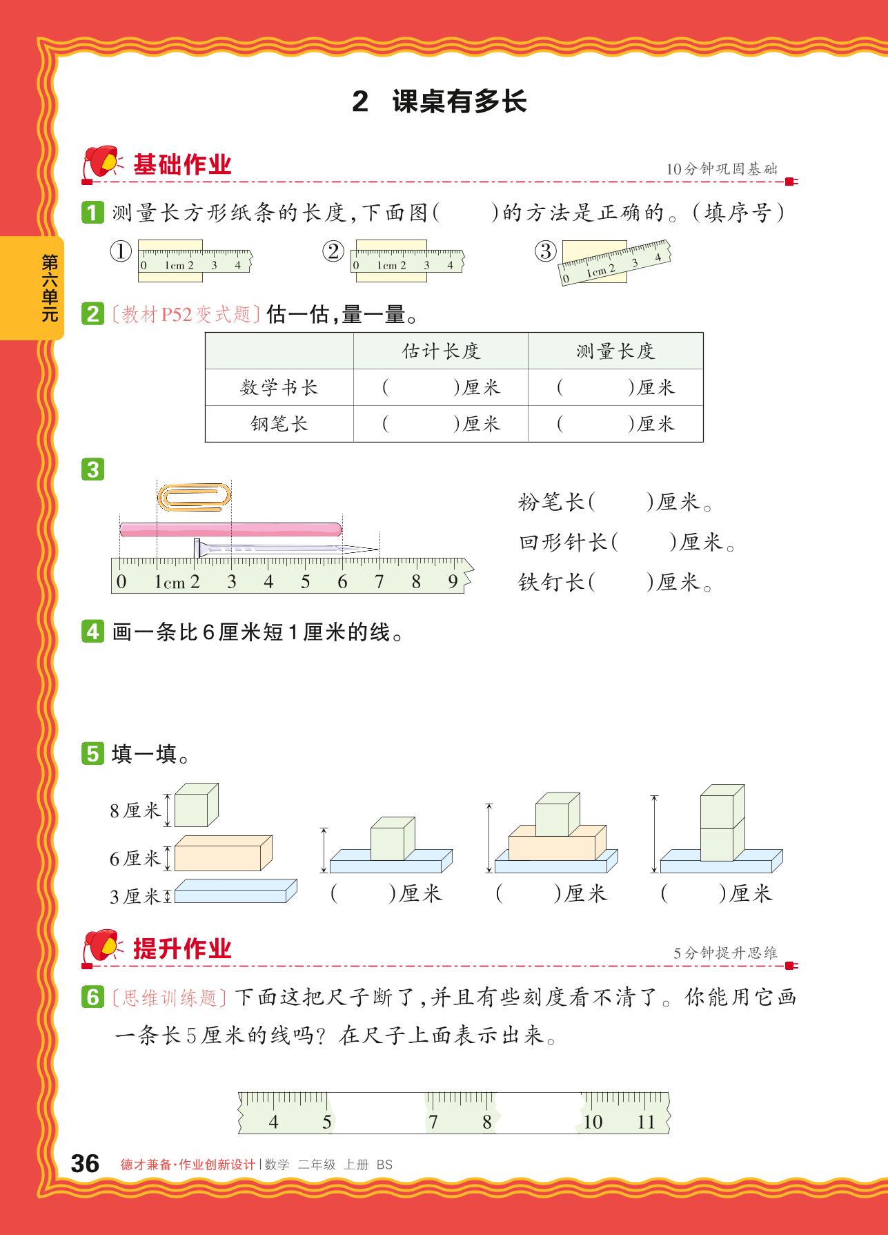 2024秋上册二年级数学北师版 第六单元 测量——2. 课桌有多长_R240819141852347