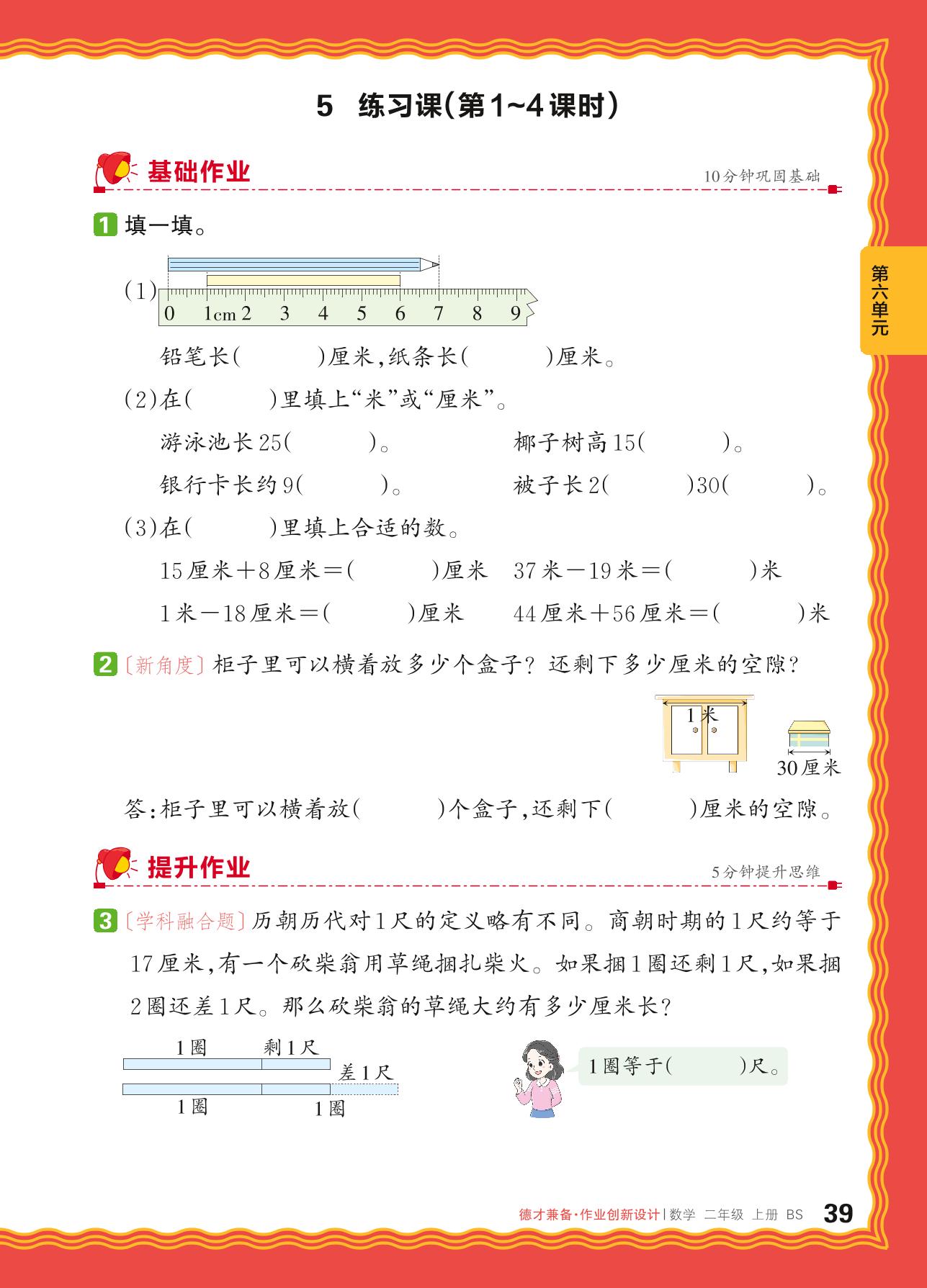 2024秋上册二年级数学北师版 第六单元 测量练习课_R240819141851288