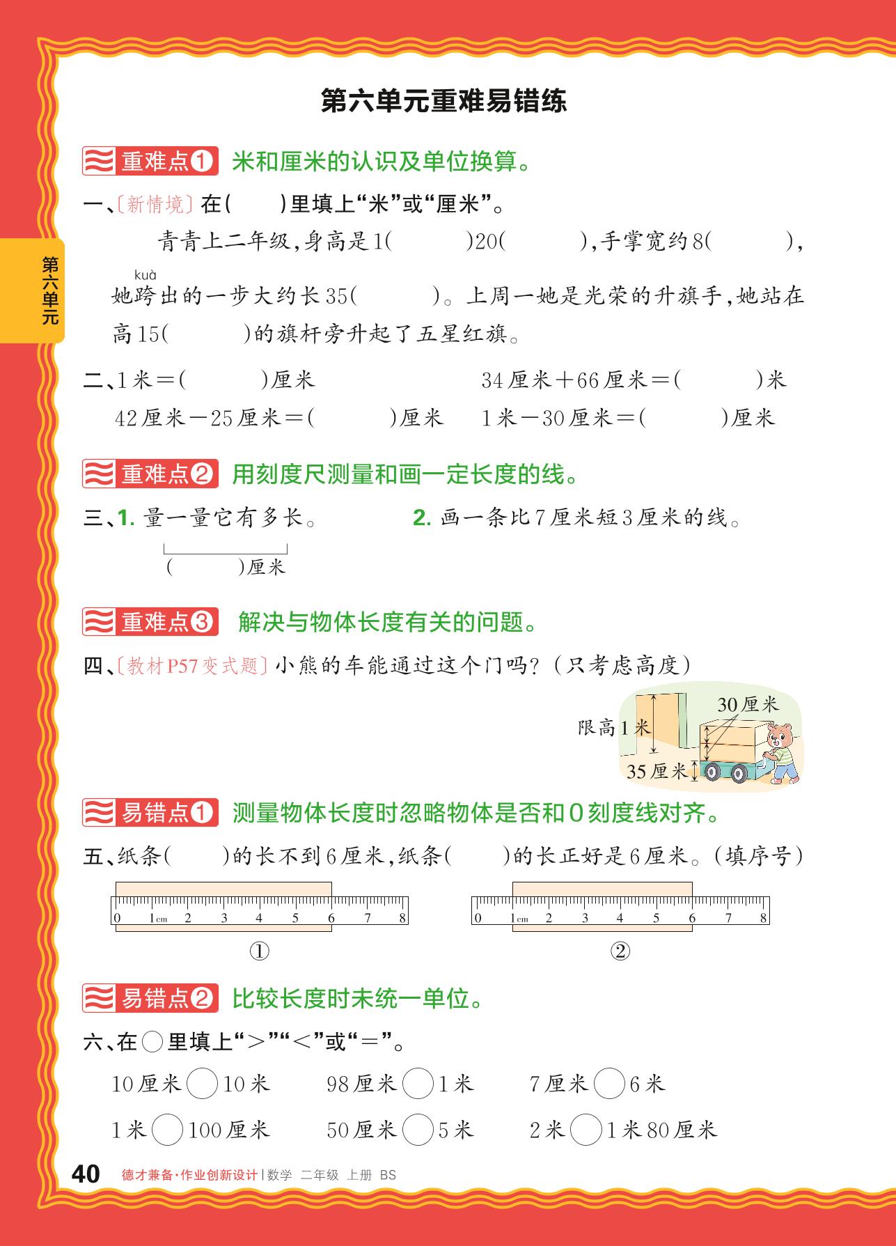 2024秋上册二年级数学北师版 第六单元重难易错练