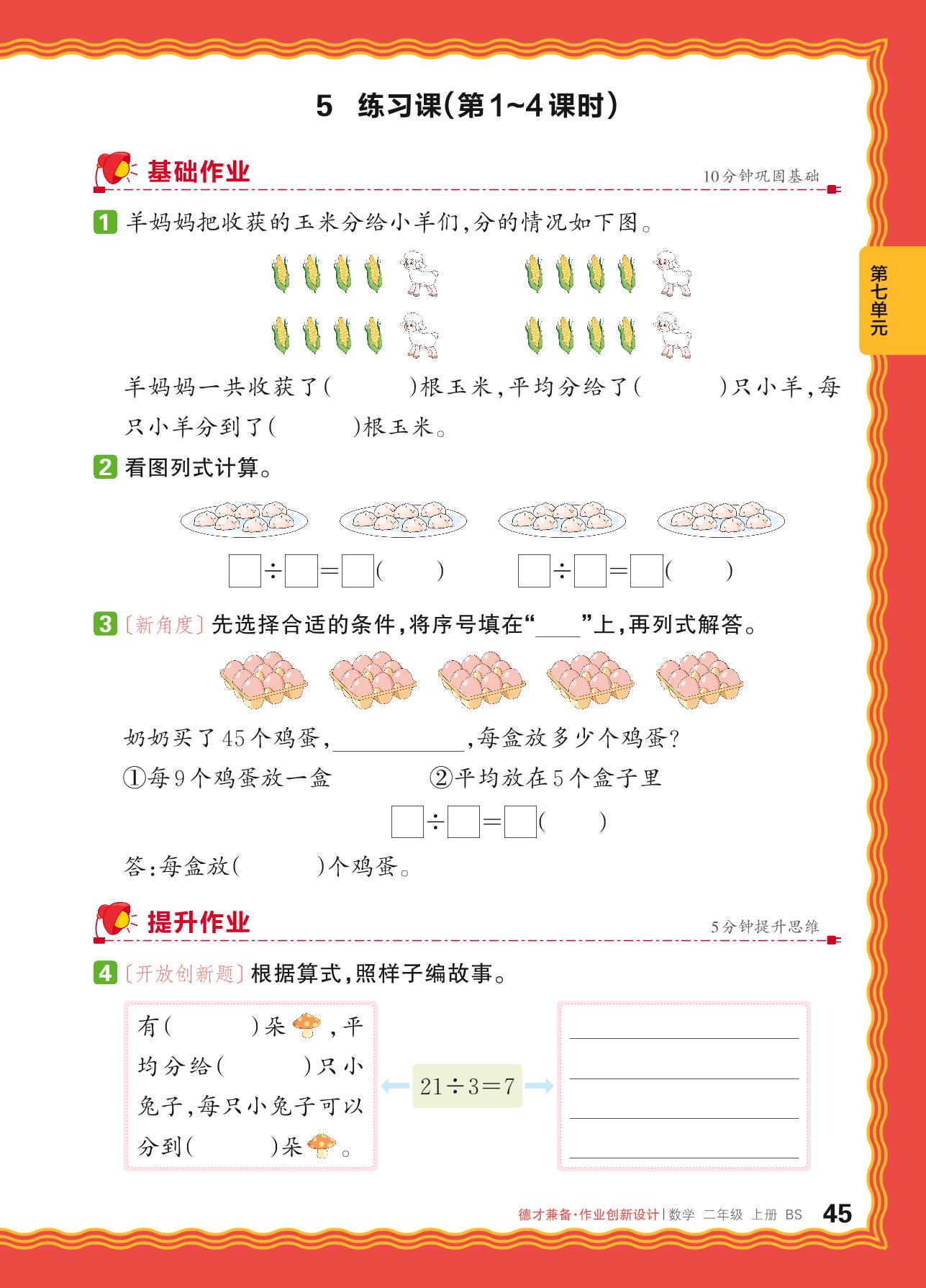 2024秋上册二年级数学北师版 第七单元 分一分与除法——5. 分物游戏、分苹果、分糖果、分香蕉练习课