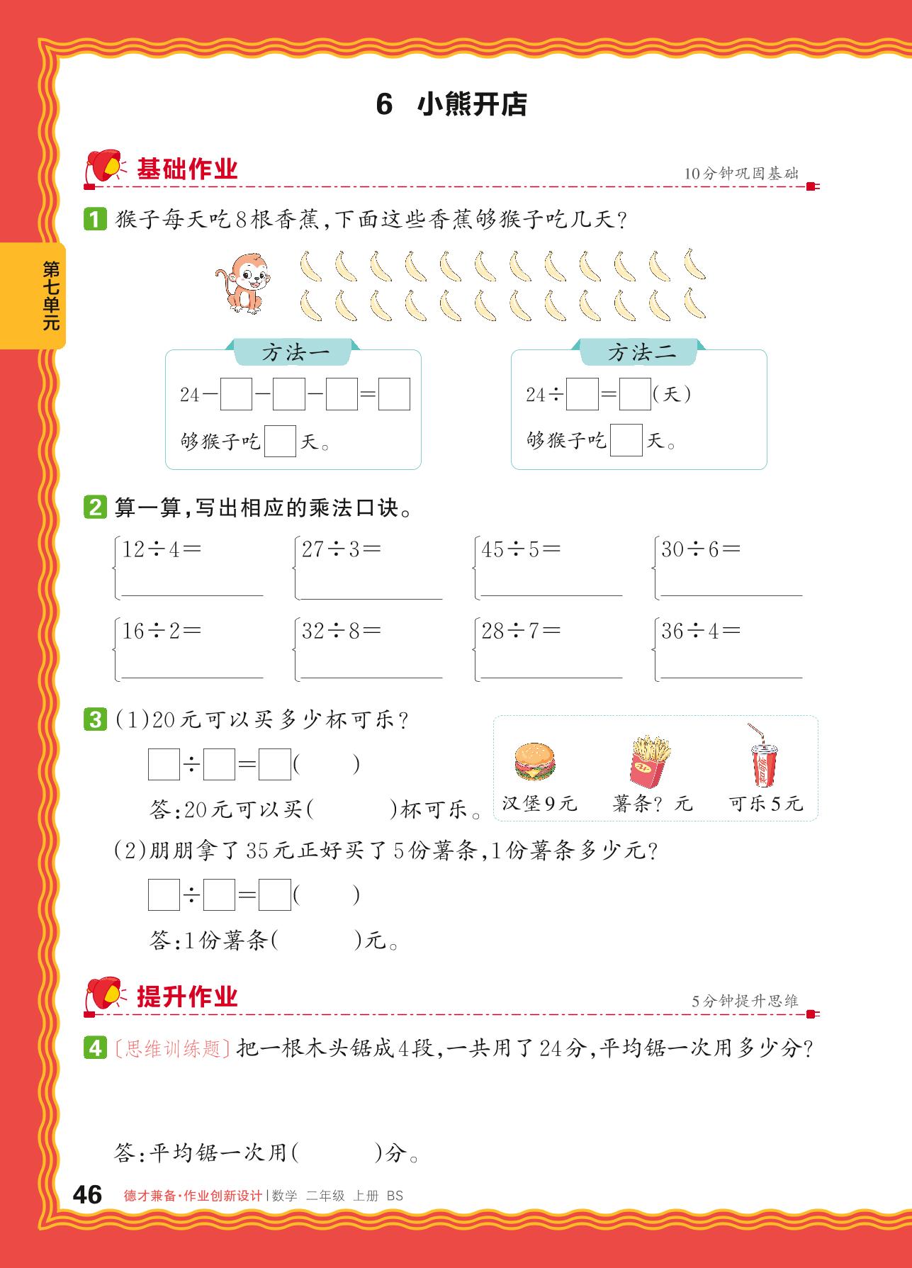 2024秋上册二年级数学北师版 第七单元 分一分与除法——6. 小熊开店
