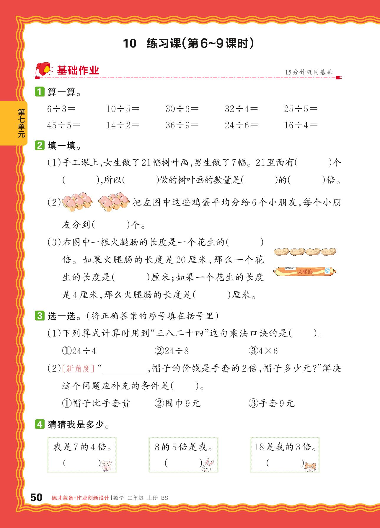 2024秋上册二年级数学北师版 第七单元 分一分与除法——10. 小熊开店、快乐的动物、花园练习课