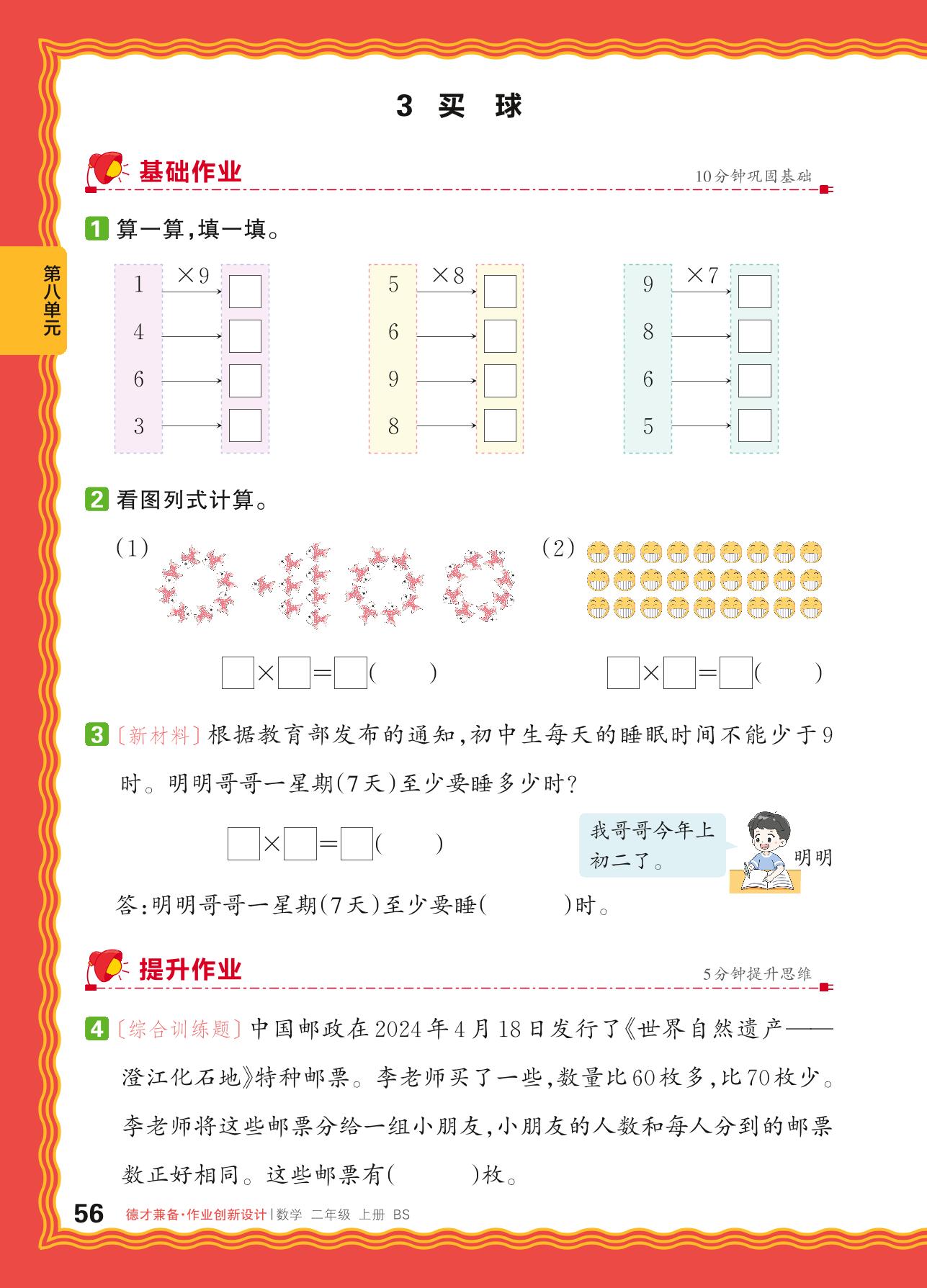 2024秋上册二年级数学北师版 第八单元 6~9的乘法口诀——3. 买球_R240819141859945