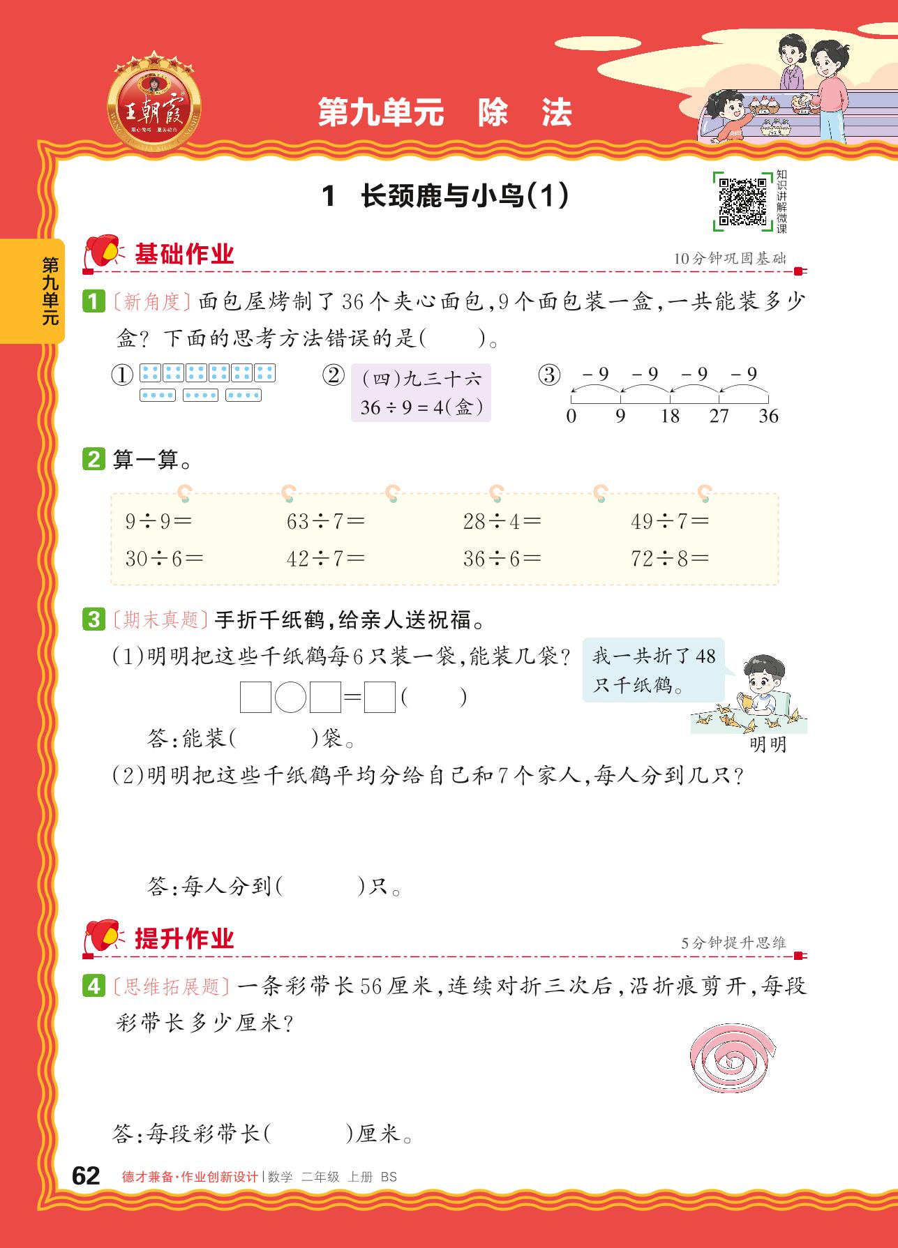 2024秋上册二年级数学北师版 第九单元 除法——1. 长颈鹿与小鸟(1)_R240819141902818