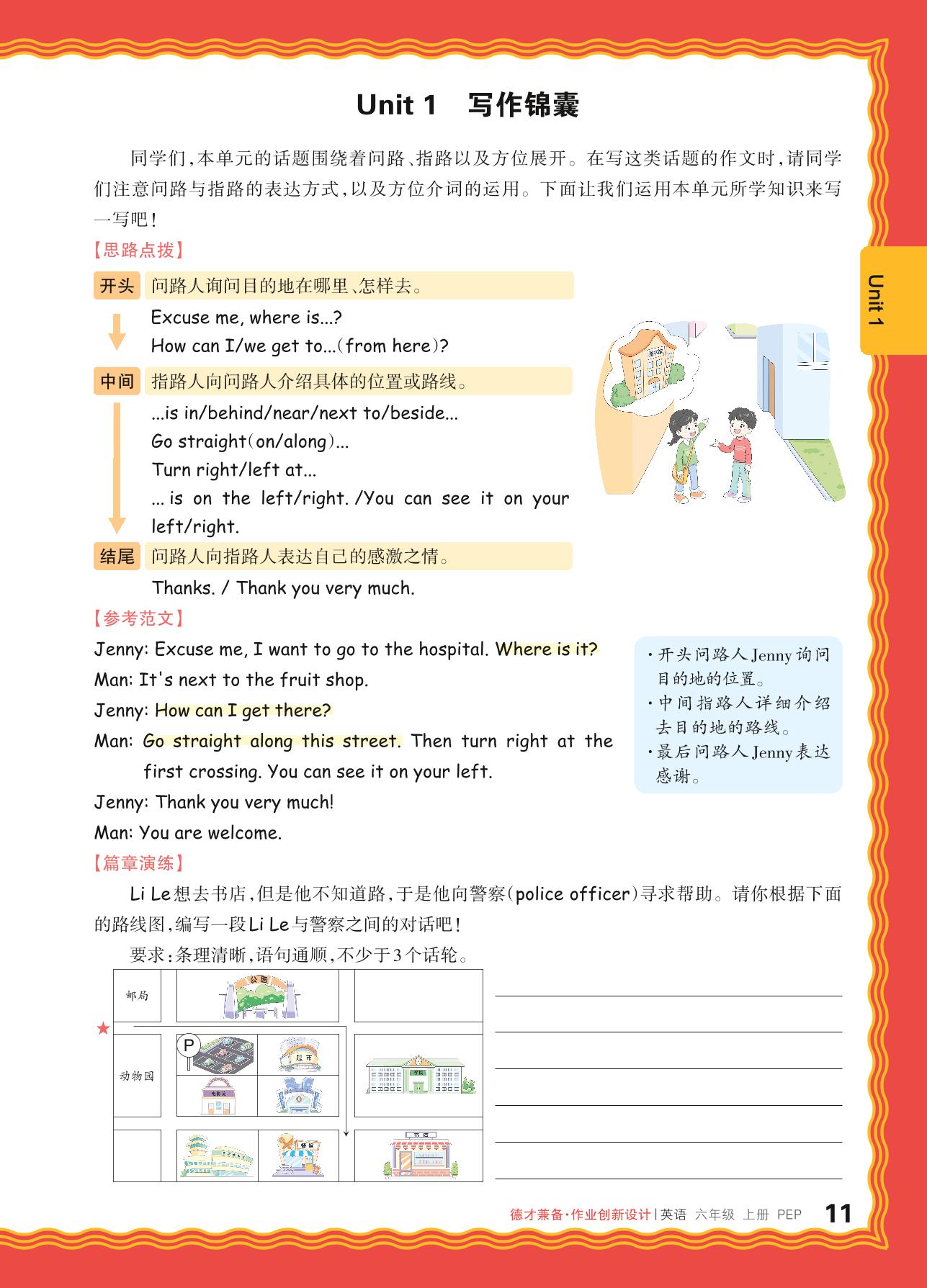 2024秋上册六年级英语人教PEP版(三起始) Unit 1 写作锦囊