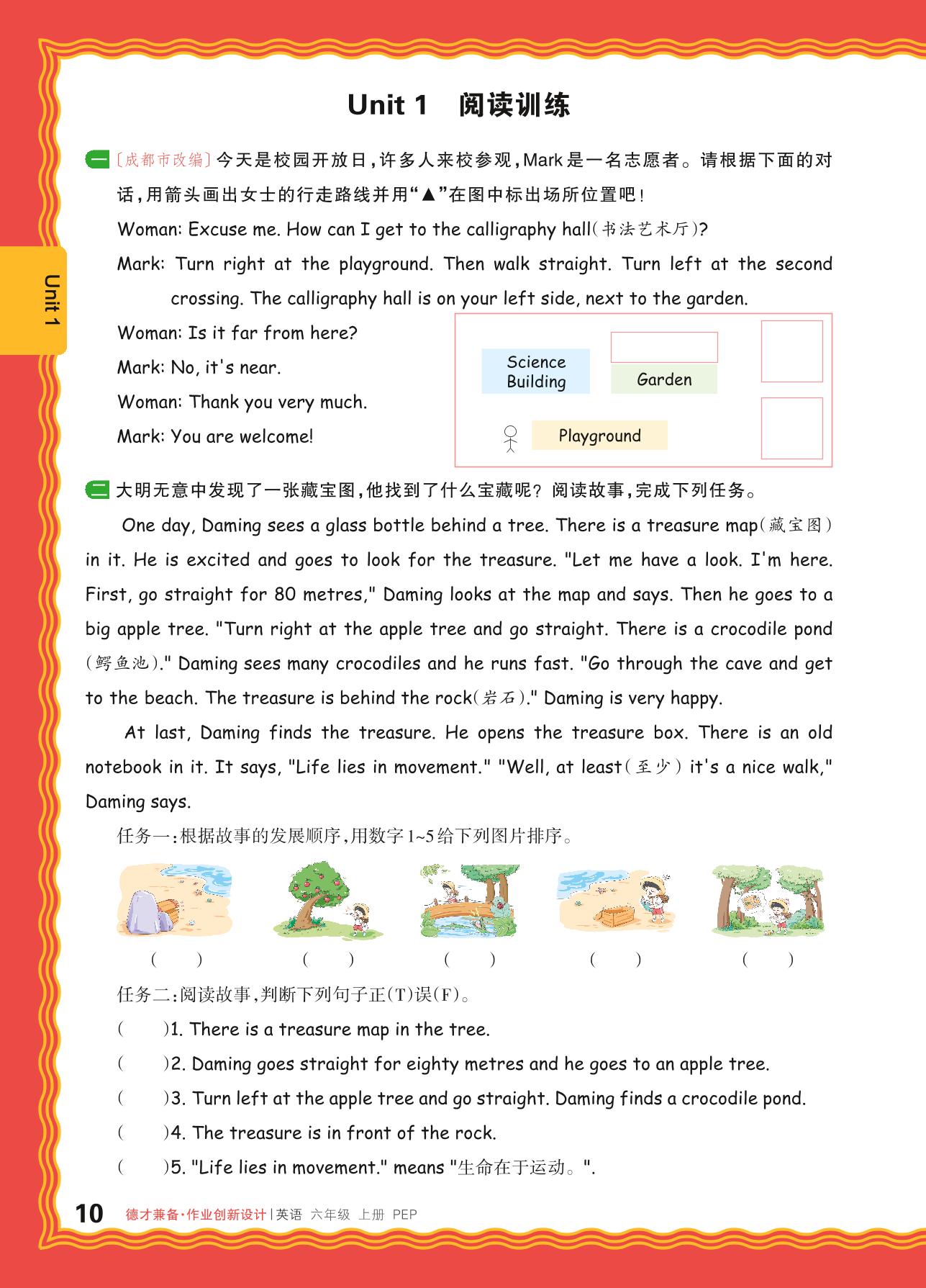 2024秋上册六年级英语人教PEP版(三起始) Unit 1 阅读训练