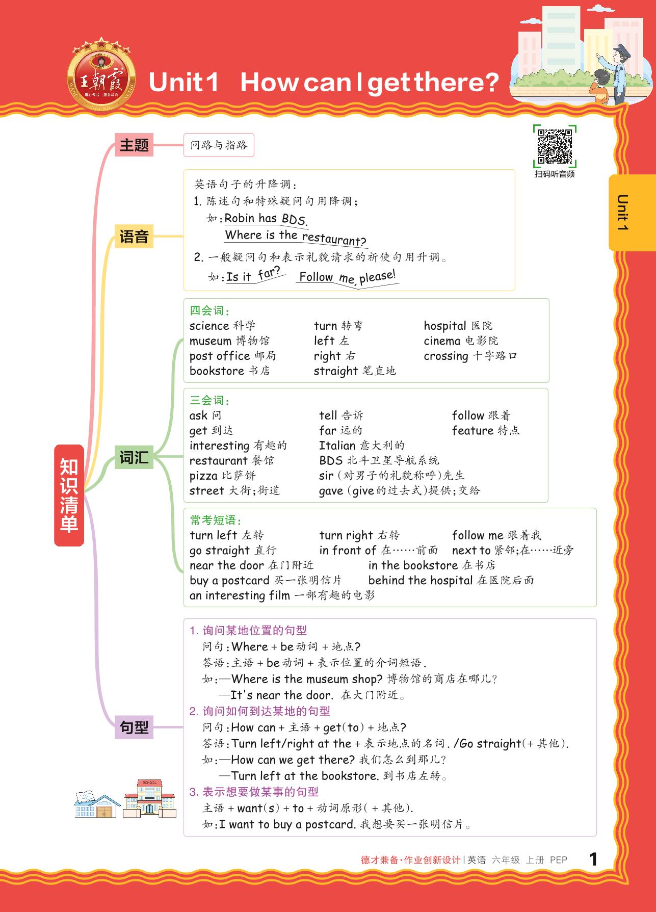 2024秋上册六年级英语人教PEP版(三起始) Unit 1 知识清单