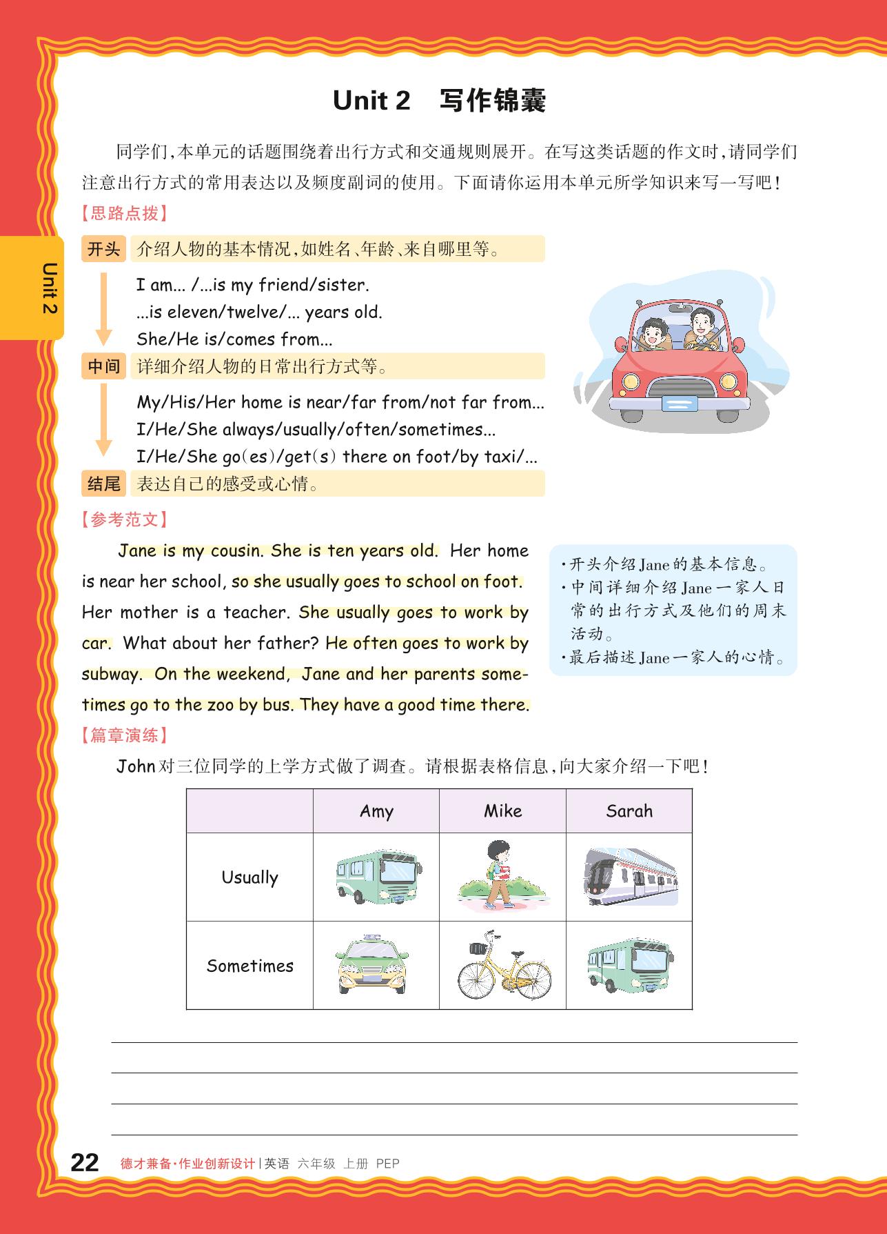 2024秋上册六年级英语人教PEP版(三起始) Unit 2 写作锦囊