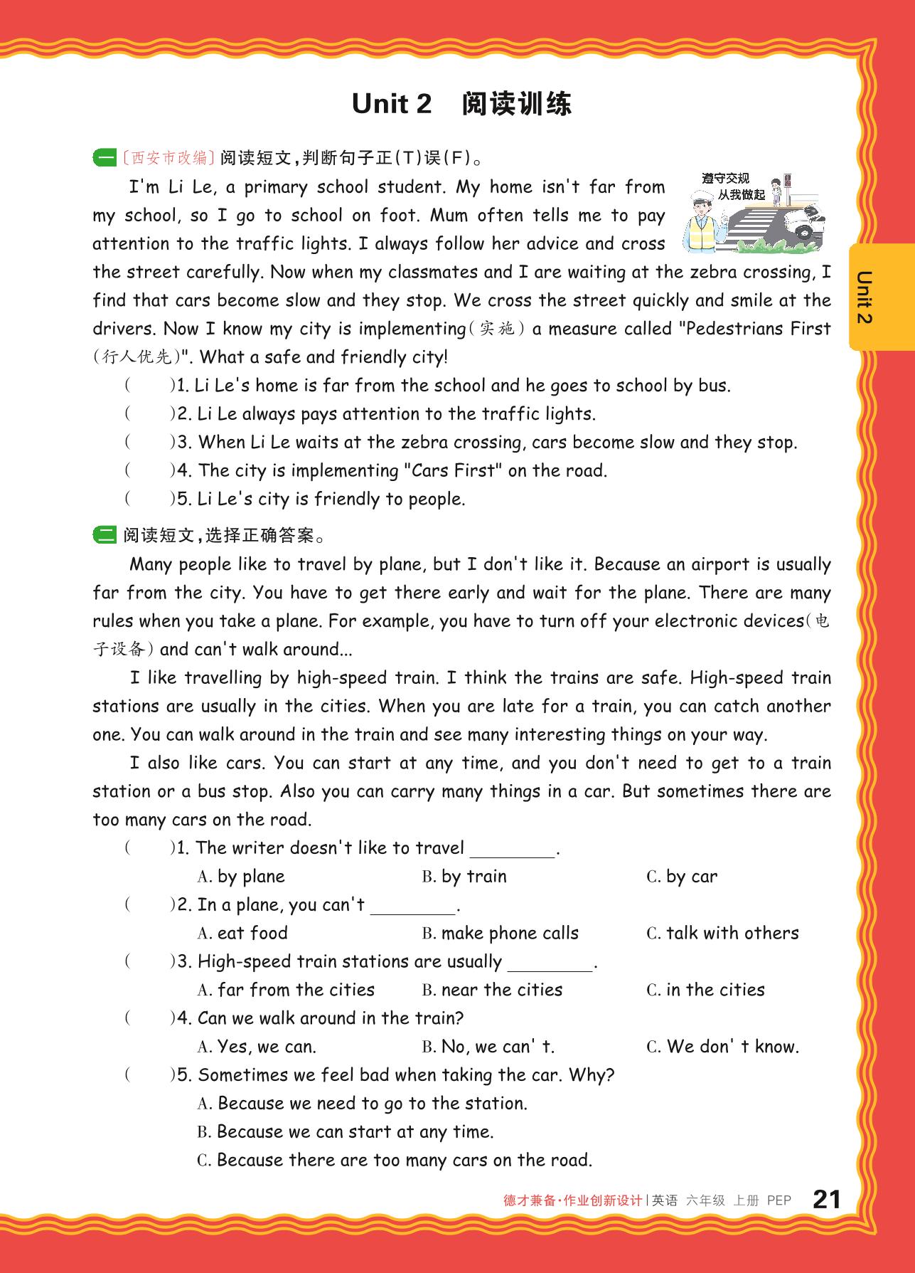 2024秋上册六年级英语人教PEP版(三起始) Unit 2 阅读训练