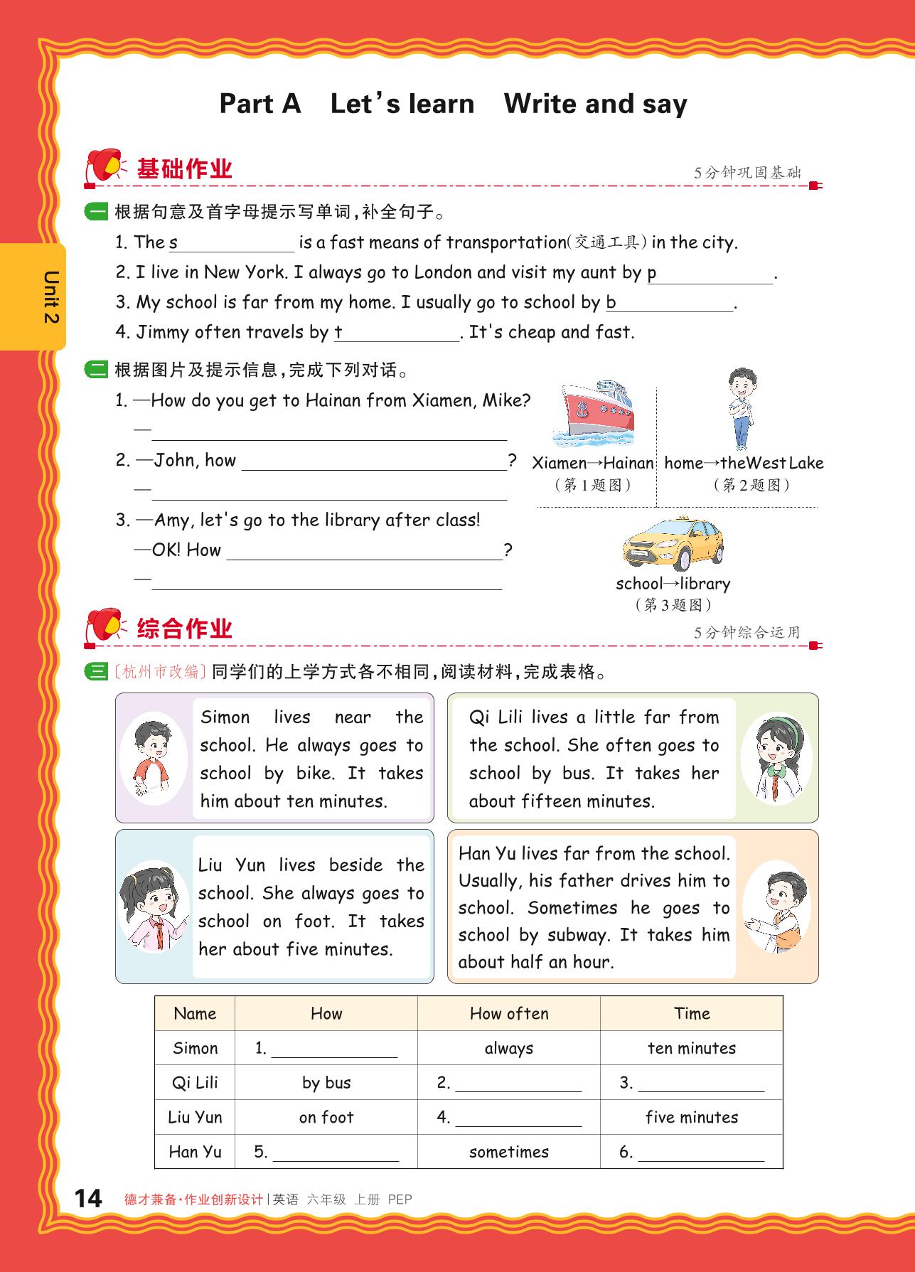 2024秋上册六年级英语人教PEP版(三起始) Unit 2—Part A Let’s learn Write and say