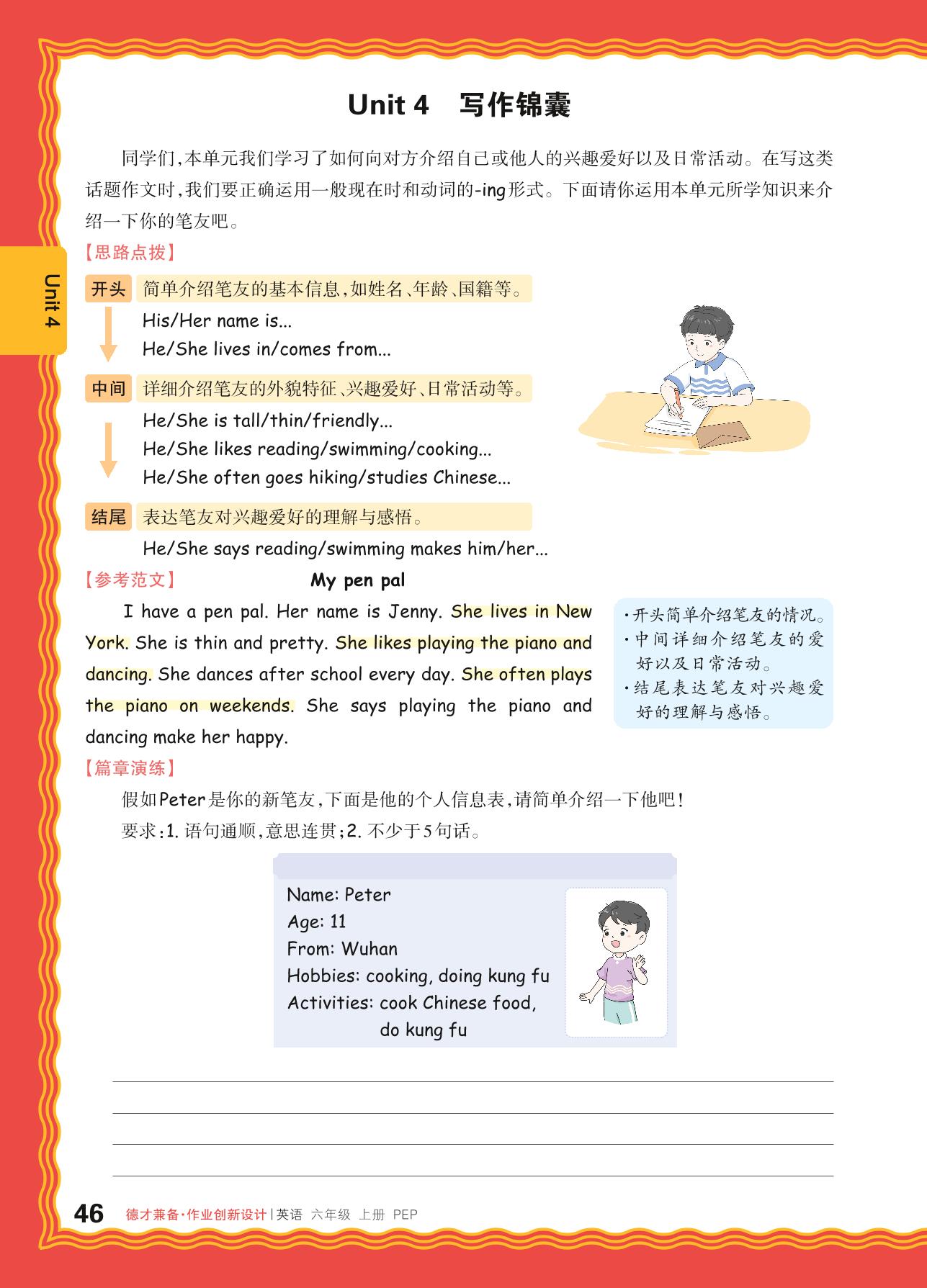 2024秋上册六年级英语人教PEP版(三起始) Unit 4 写作锦囊