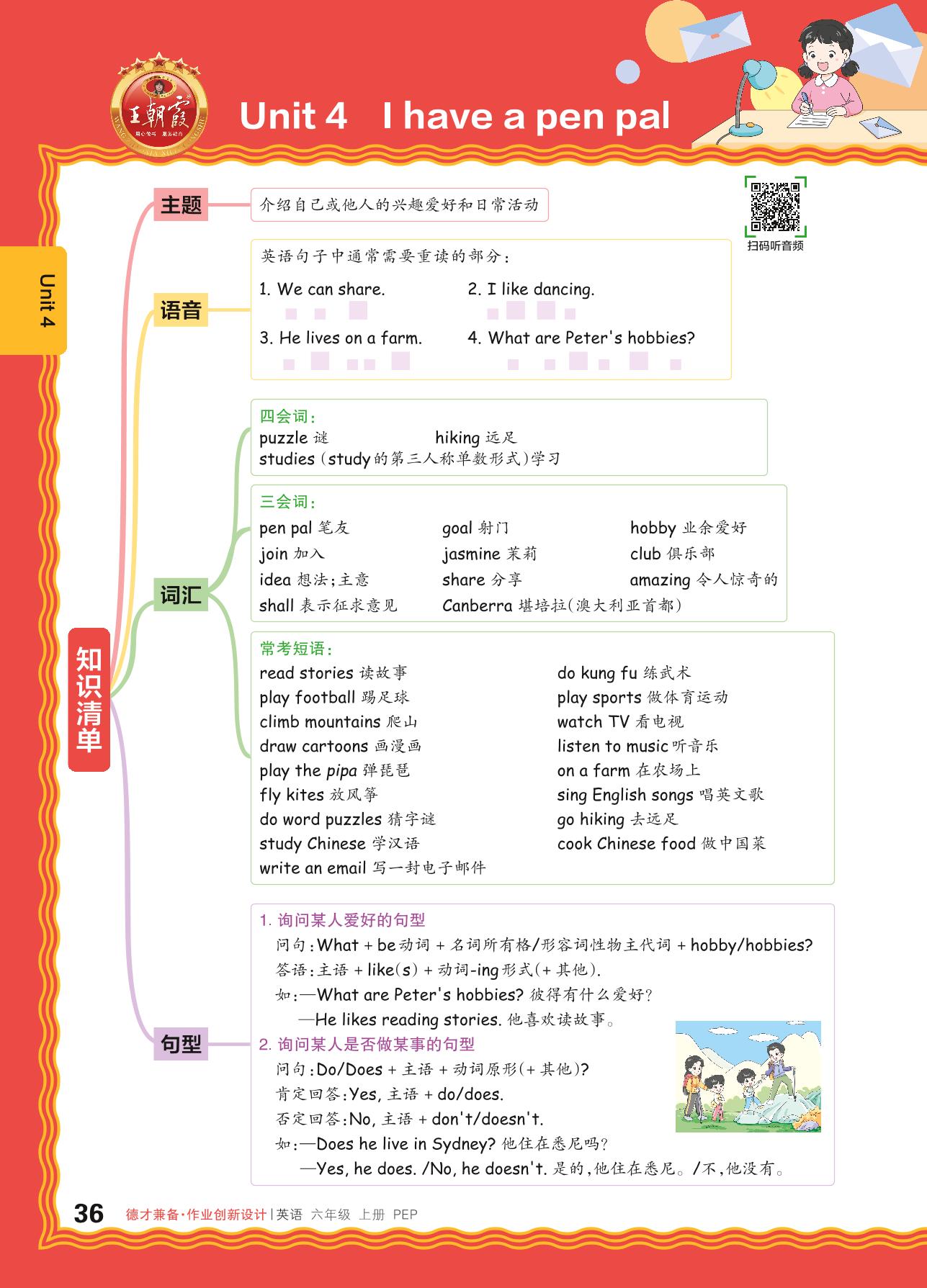 2024秋上册六年级英语人教PEP版(三起始) Unit 4 知识清单