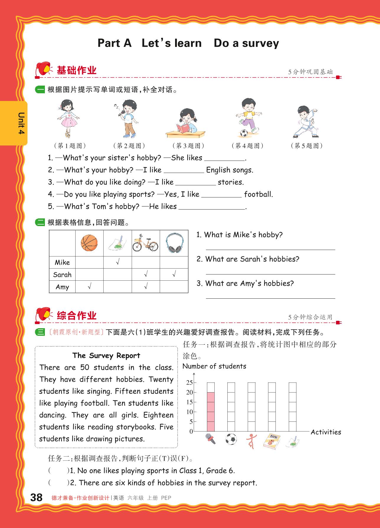 2024秋上册六年级英语人教PEP版(三起始) Unit 4—Part A Let’s learn Do a survey