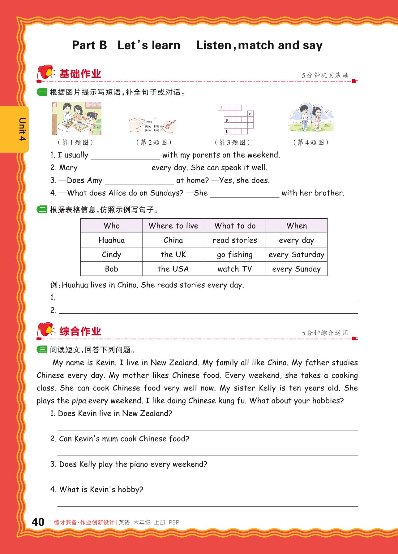 2024秋上册六年级英语人教PEP版(三起始) Unit 4—Part B Let’s learn Listen,match and say