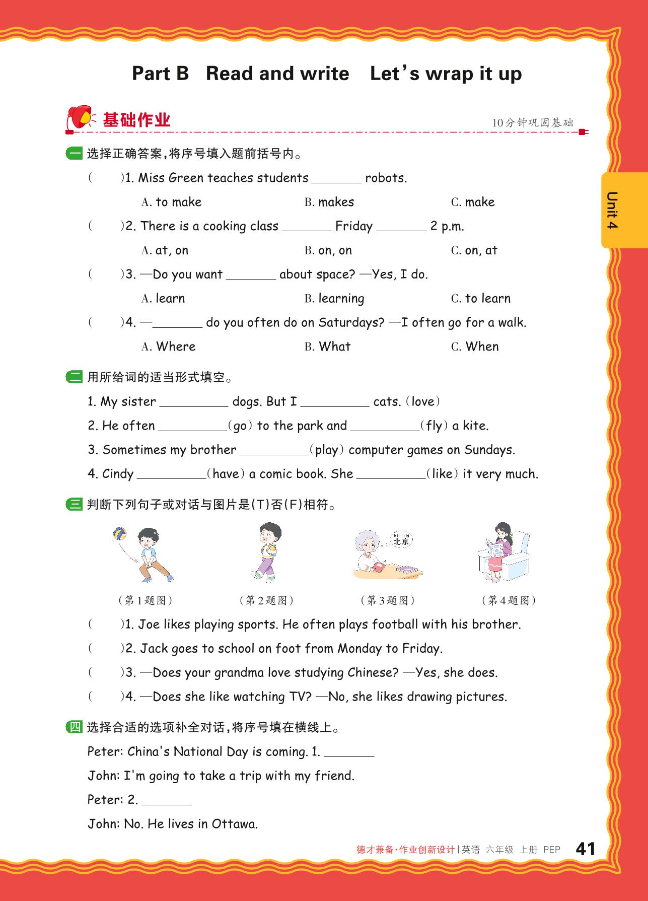 2024秋上册六年级英语人教PEP版(三起始) Unit 4—Part B Read and write Let’s wrap it up