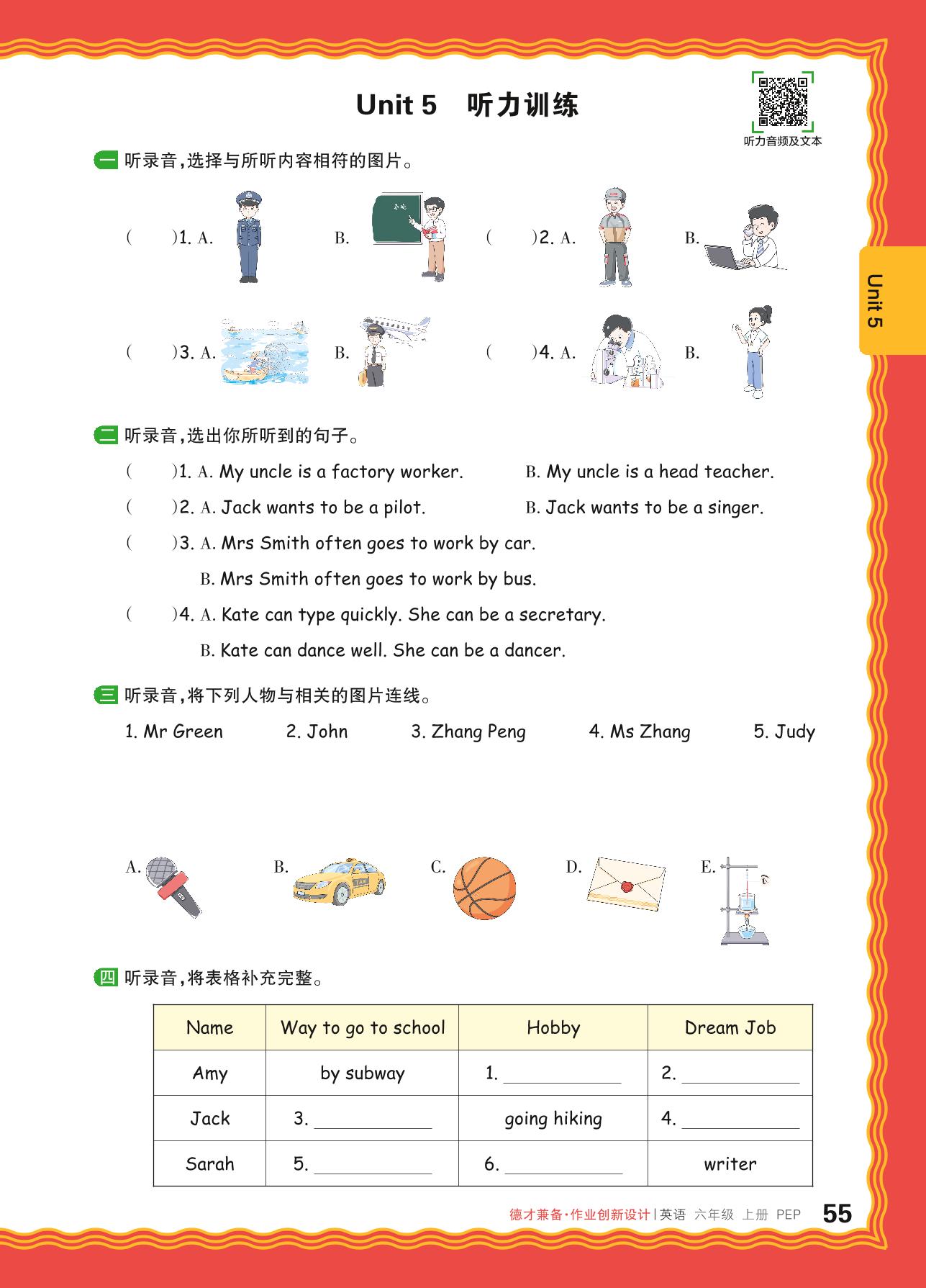2024秋上册六年级英语人教PEP版(三起始) Unit 5 听力训练