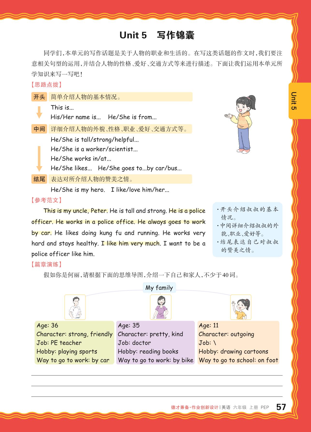 2024秋上册六年级英语人教PEP版(三起始) Unit 5 写作锦囊