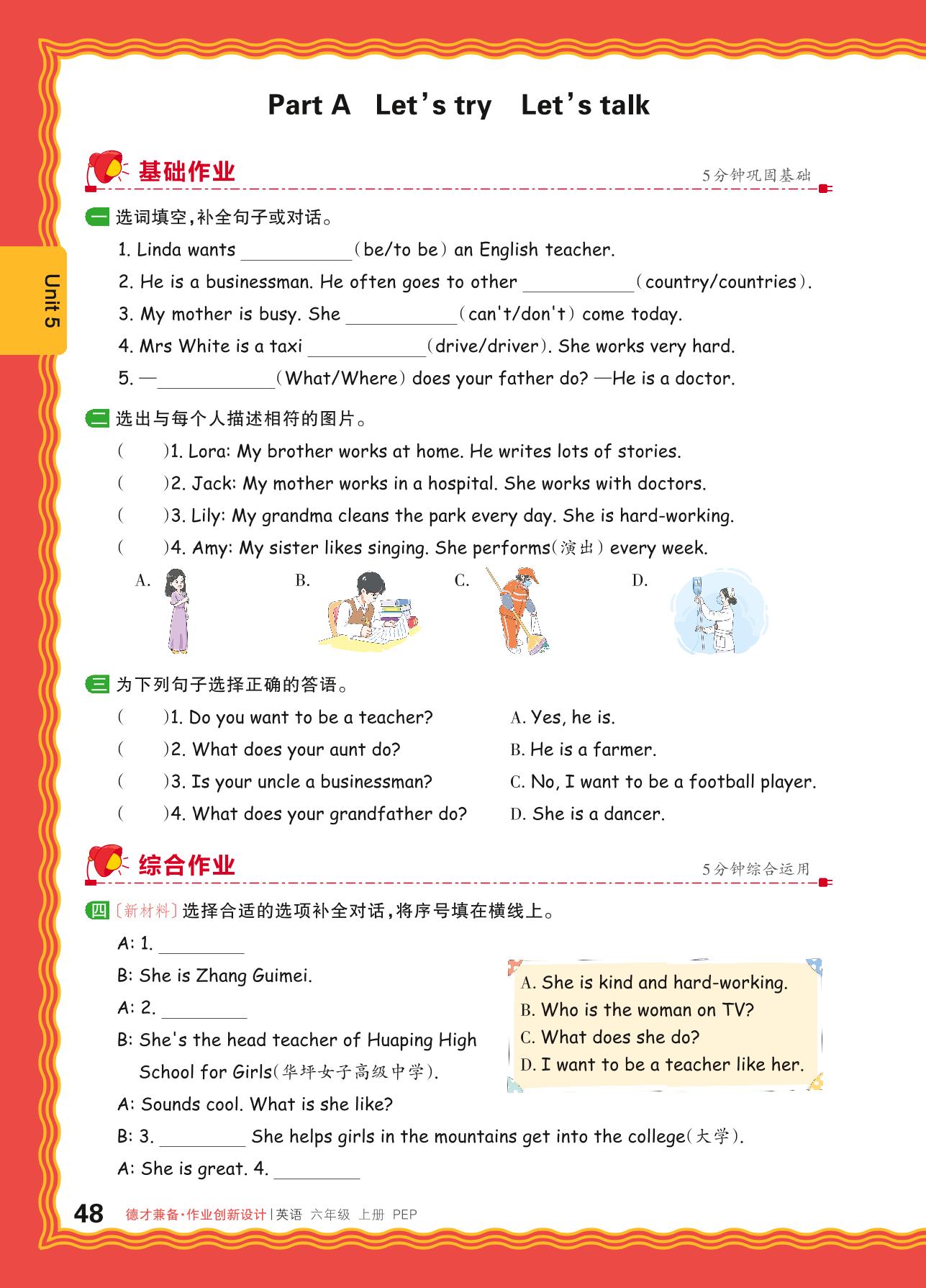 2024秋上册六年级英语人教PEP版(三起始) Unit 5—Part A Let’s try Let’s talk