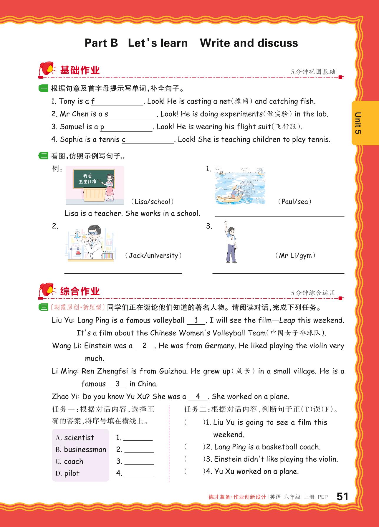 2024秋上册六年级英语人教PEP版(三起始) Unit 5—Part B Let’s learn Write and discuss