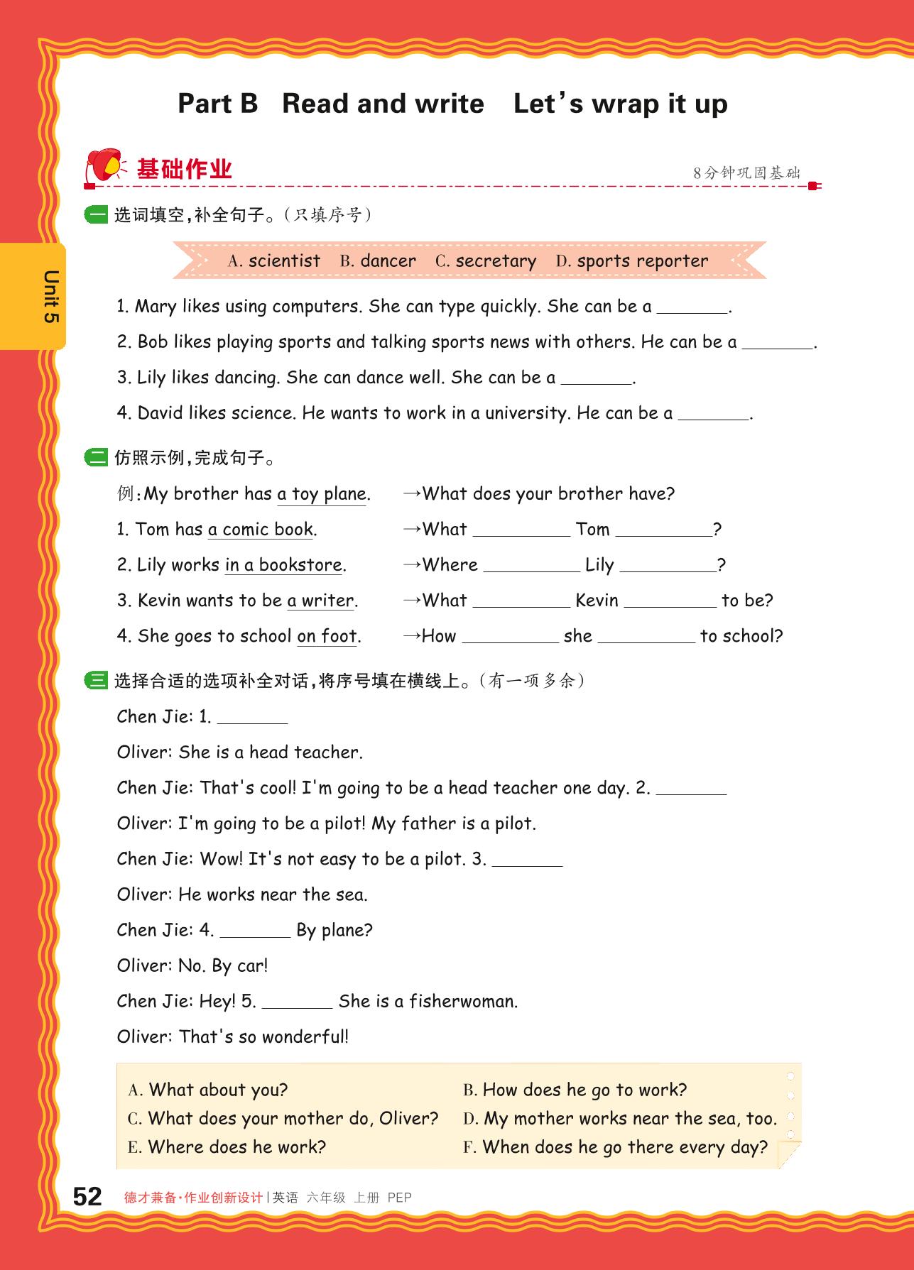 2024秋上册六年级英语人教PEP版(三起始) Unit 5—Part B Read and write Let’s wrap it up