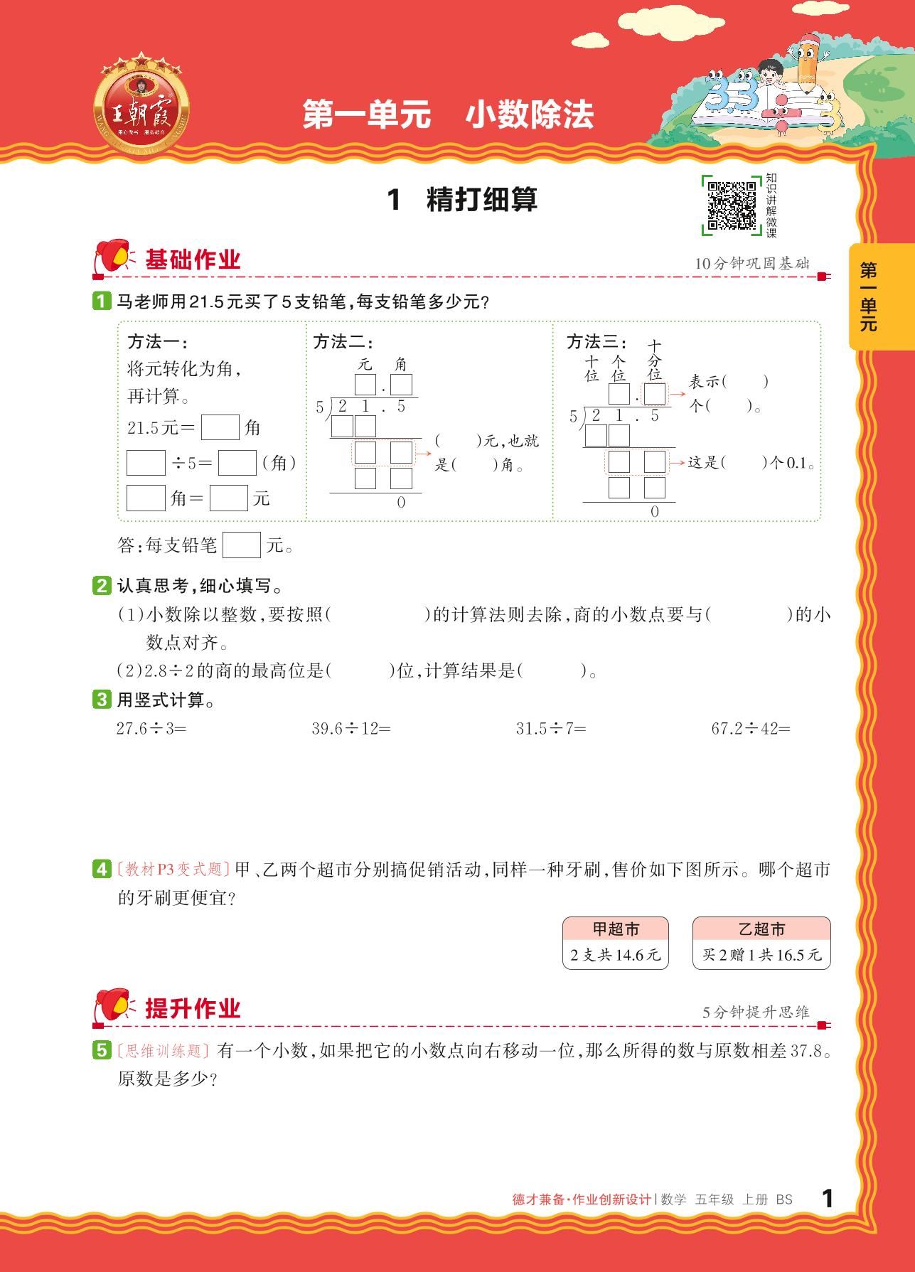 2024秋上册五年级数学北师版 第一单元 小数除法——1. 精打细算_R240819163103390