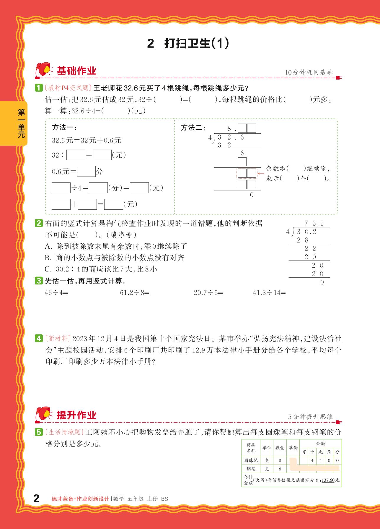 2024秋上册五年级数学北师版 第一单元 小数除法——2. 打扫卫生(1)_R240819163103083