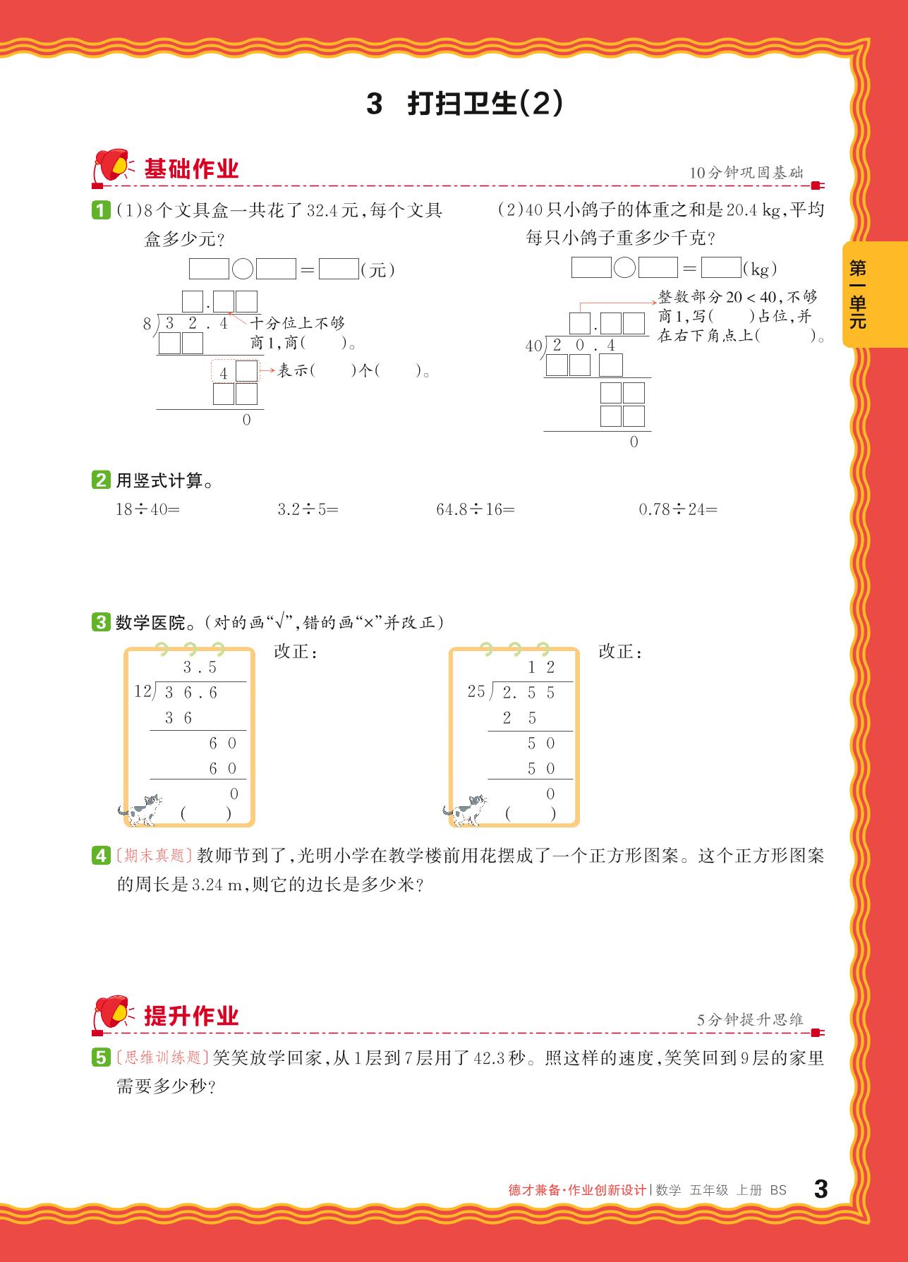2024秋上册五年级数学北师版 第一单元 小数除法——3. 打扫卫生(2)_R240819163104540