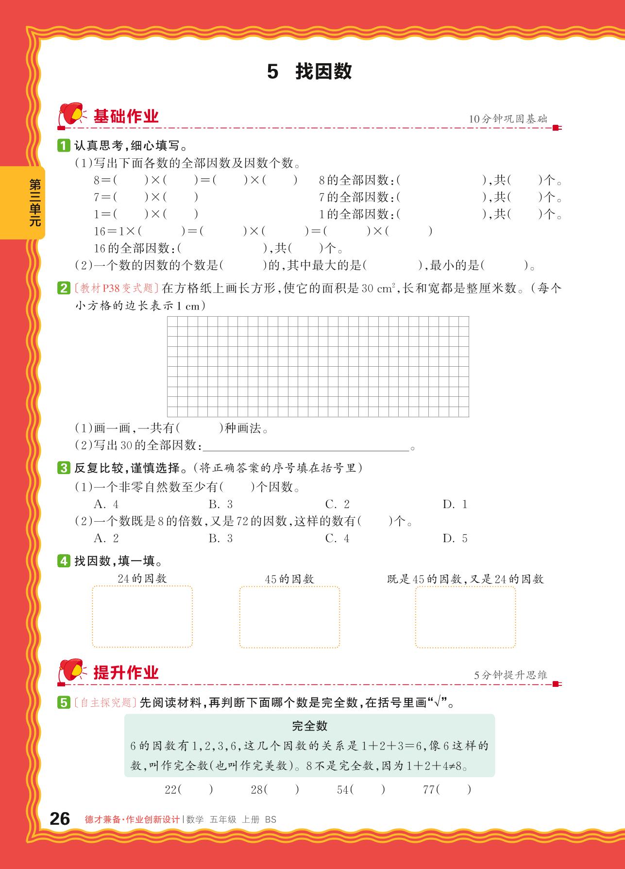 2024秋上册五年级数学北师版 第三单元 倍数与因数——5. 找因数