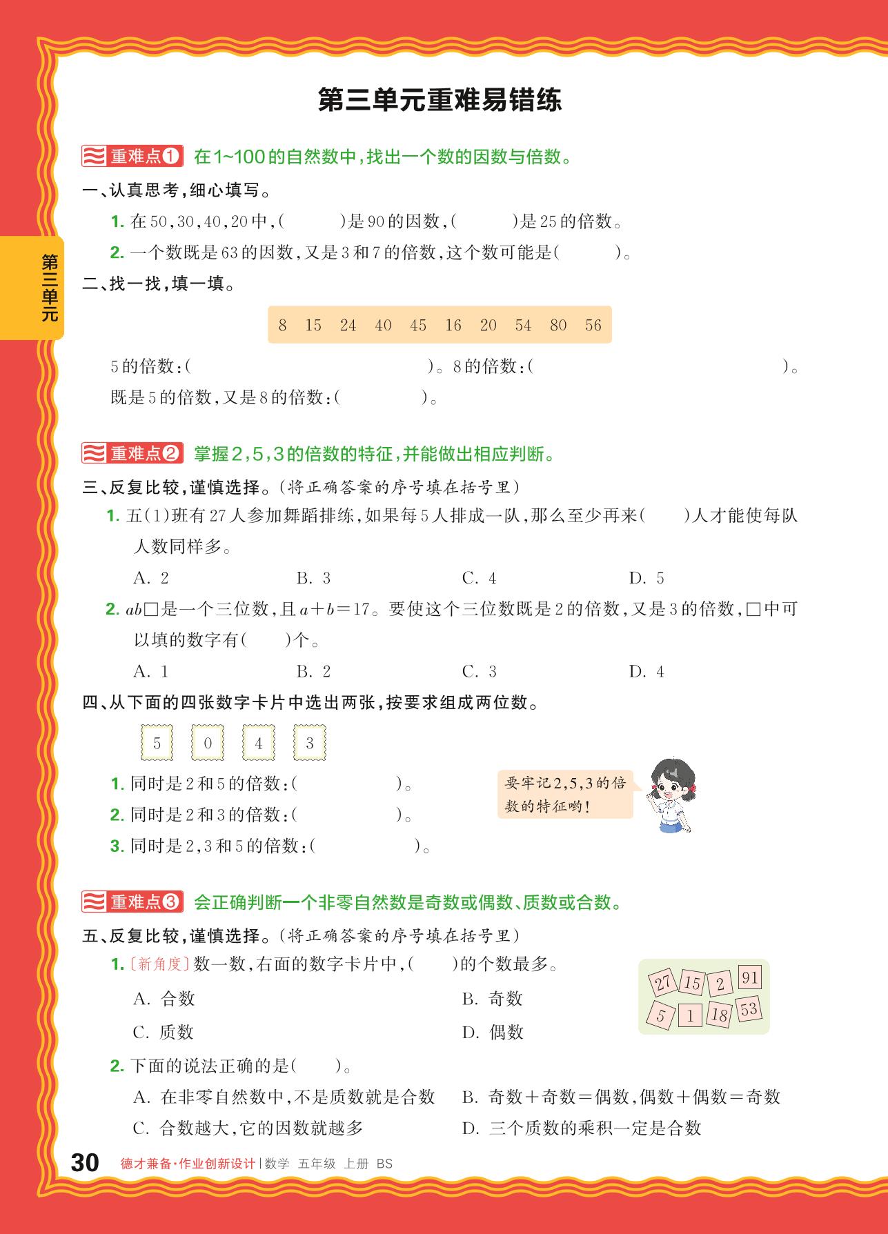 2024秋上册五年级数学北师版 第三单元重难易错练