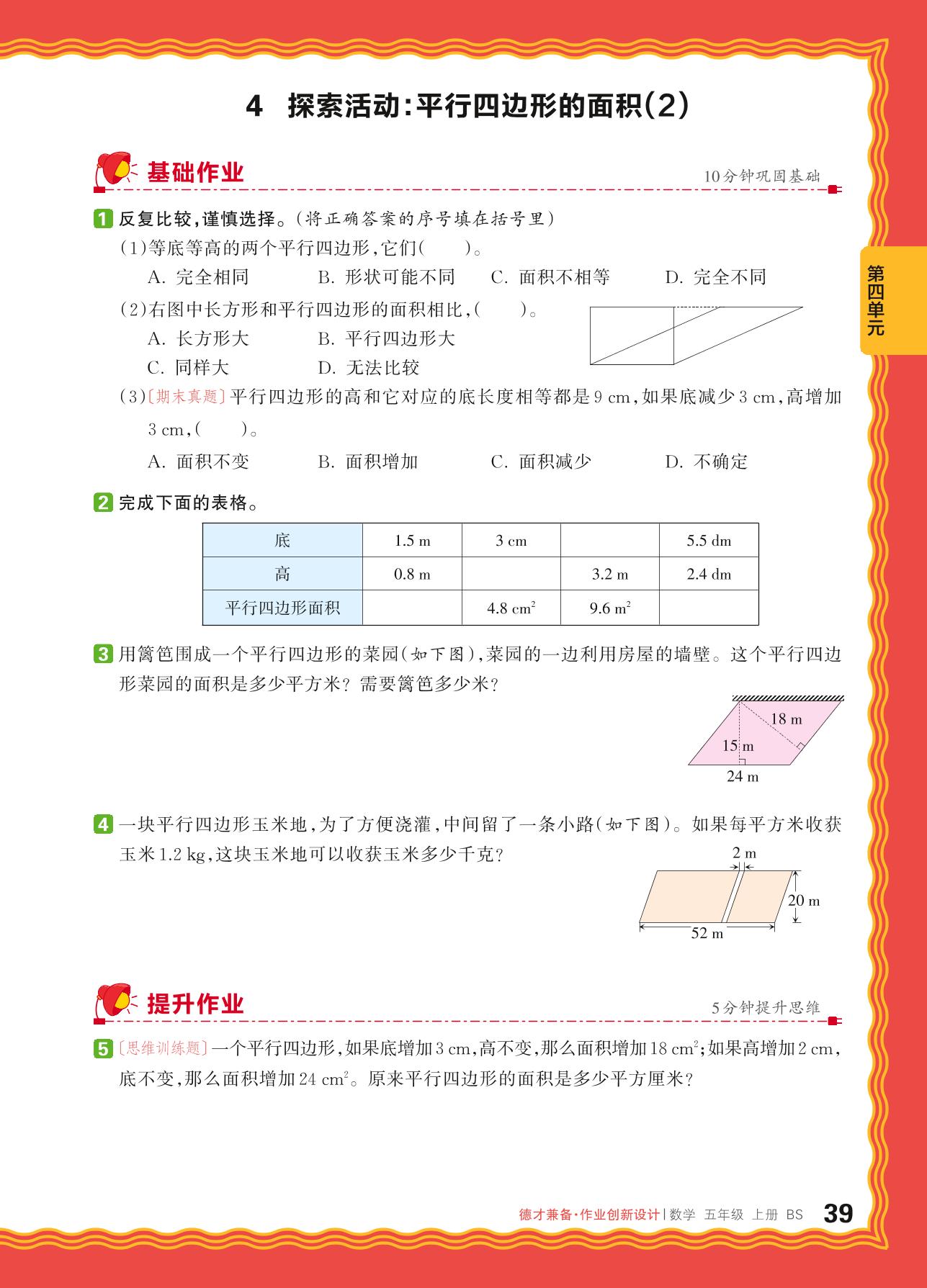 2024秋上册五年级数学北师版 第四单元 多边形的面积——4. 探索活动:平行四边形的面积(2)_R240819163113771