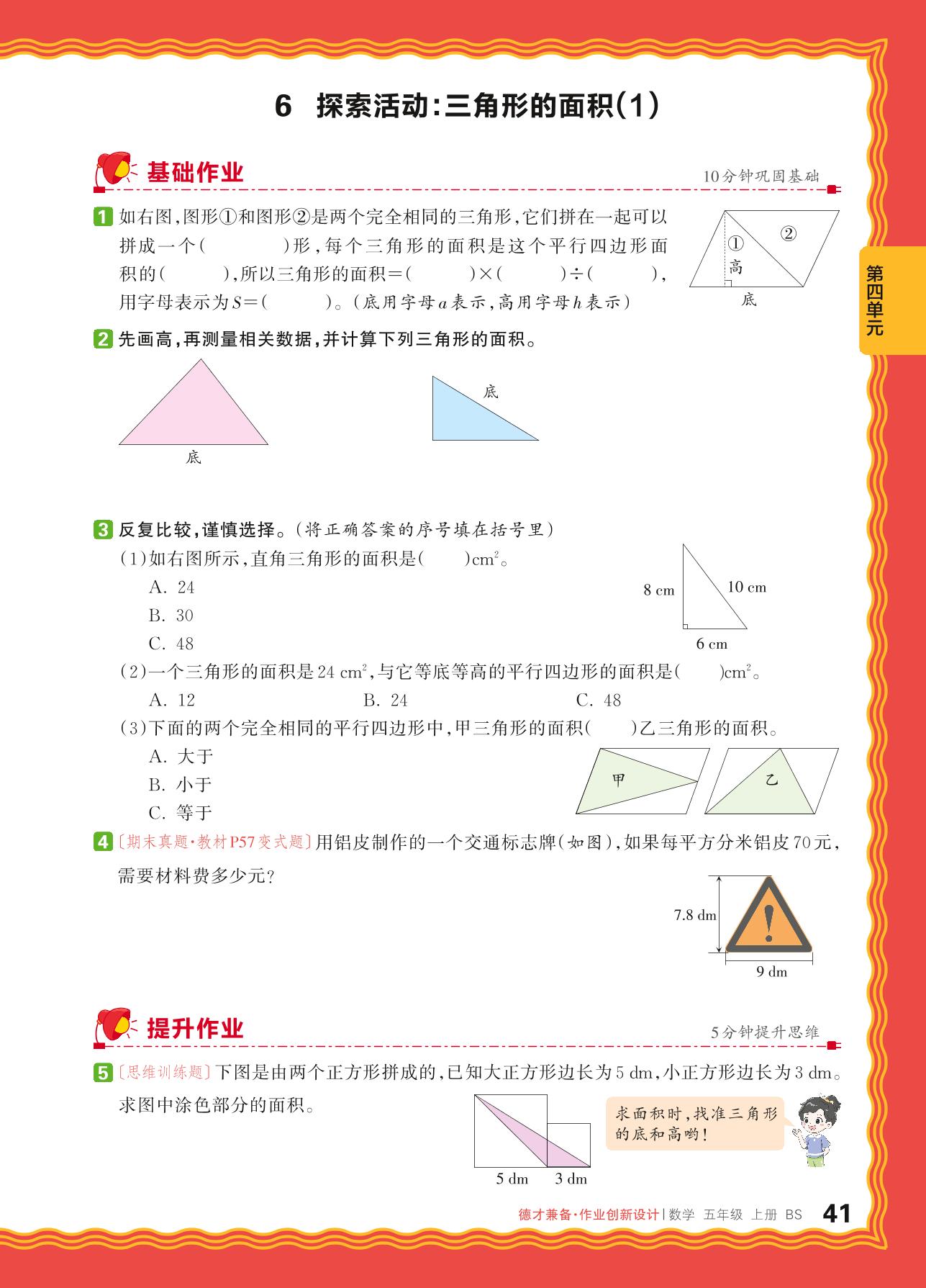 2024秋上册五年级数学北师版 第四单元 多边形的面积——6. 探索活动:三角形的面积(1)