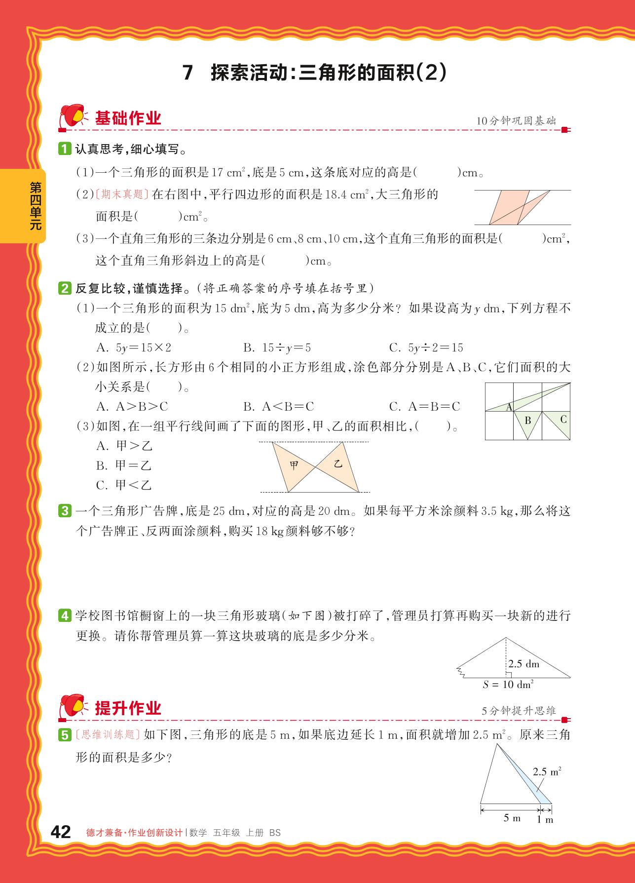 2024秋上册五年级数学北师版 第四单元 多边形的面积——7. 探索活动:三角形的面积(2)