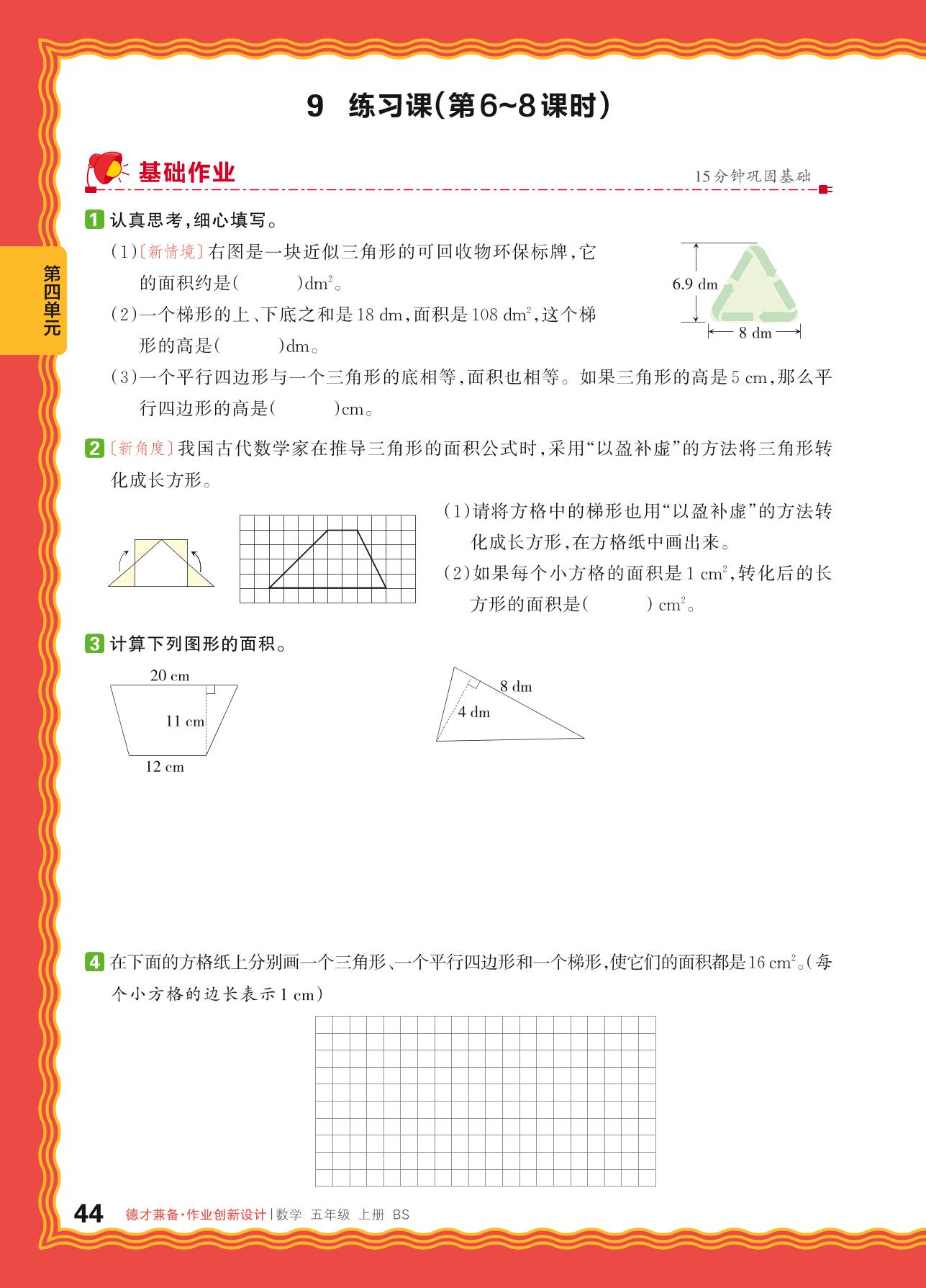 2024秋上册五年级数学北师版 第四单元 多边形的面积——9. 探索活动:三角形的面积、梯形的面积练习课