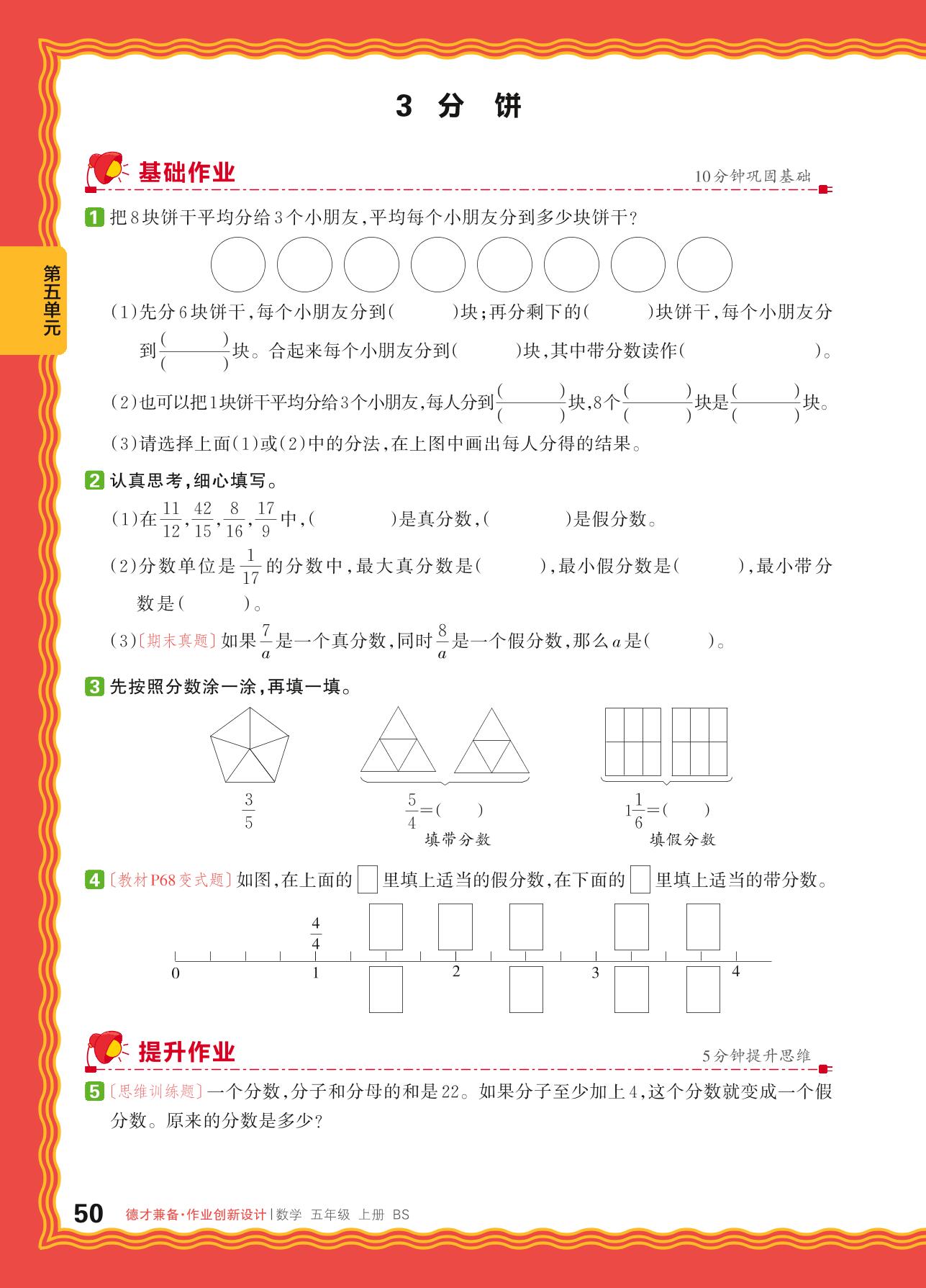 2024秋上册五年级数学北师版 第五单元 分数的意义——3. 分饼_R240819163117482
