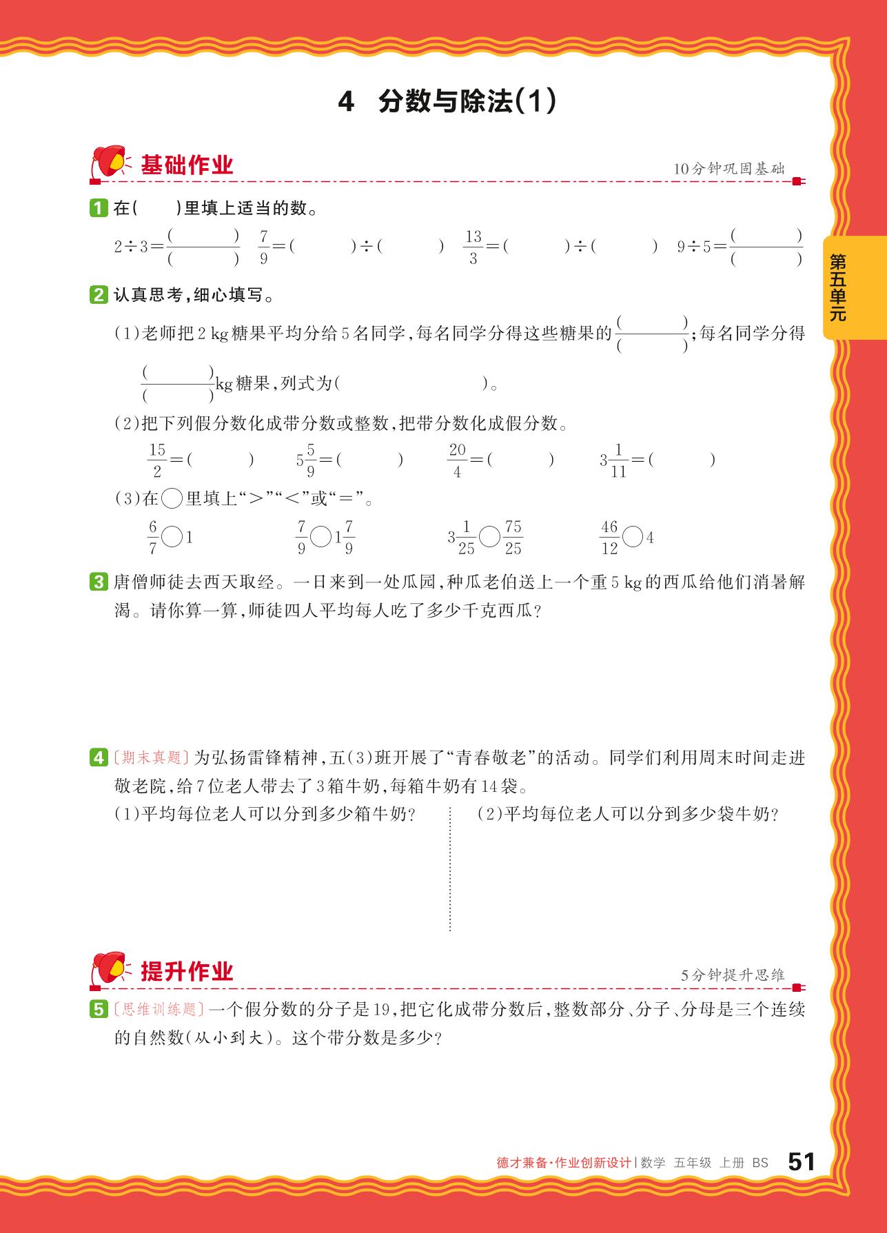 2024秋上册五年级数学北师版 第五单元 分数的意义——4. 分数与除法(1)_R240819163118625