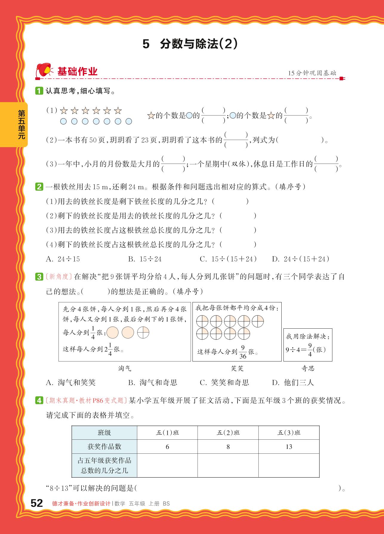 2024秋上册五年级数学北师版 第五单元 分数的意义——5. 分数与除法(2)_R240819163118777