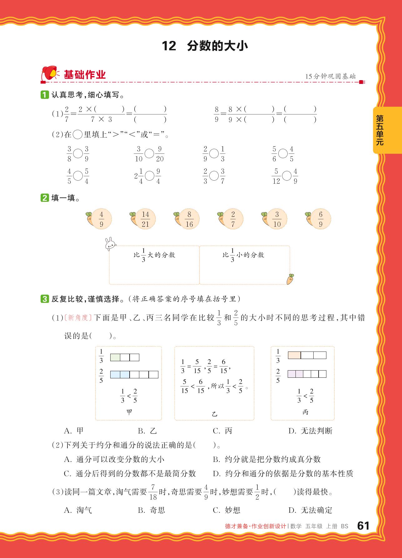 2024秋上册五年级数学北师版 第五单元 分数的意义——12. 分数的大小