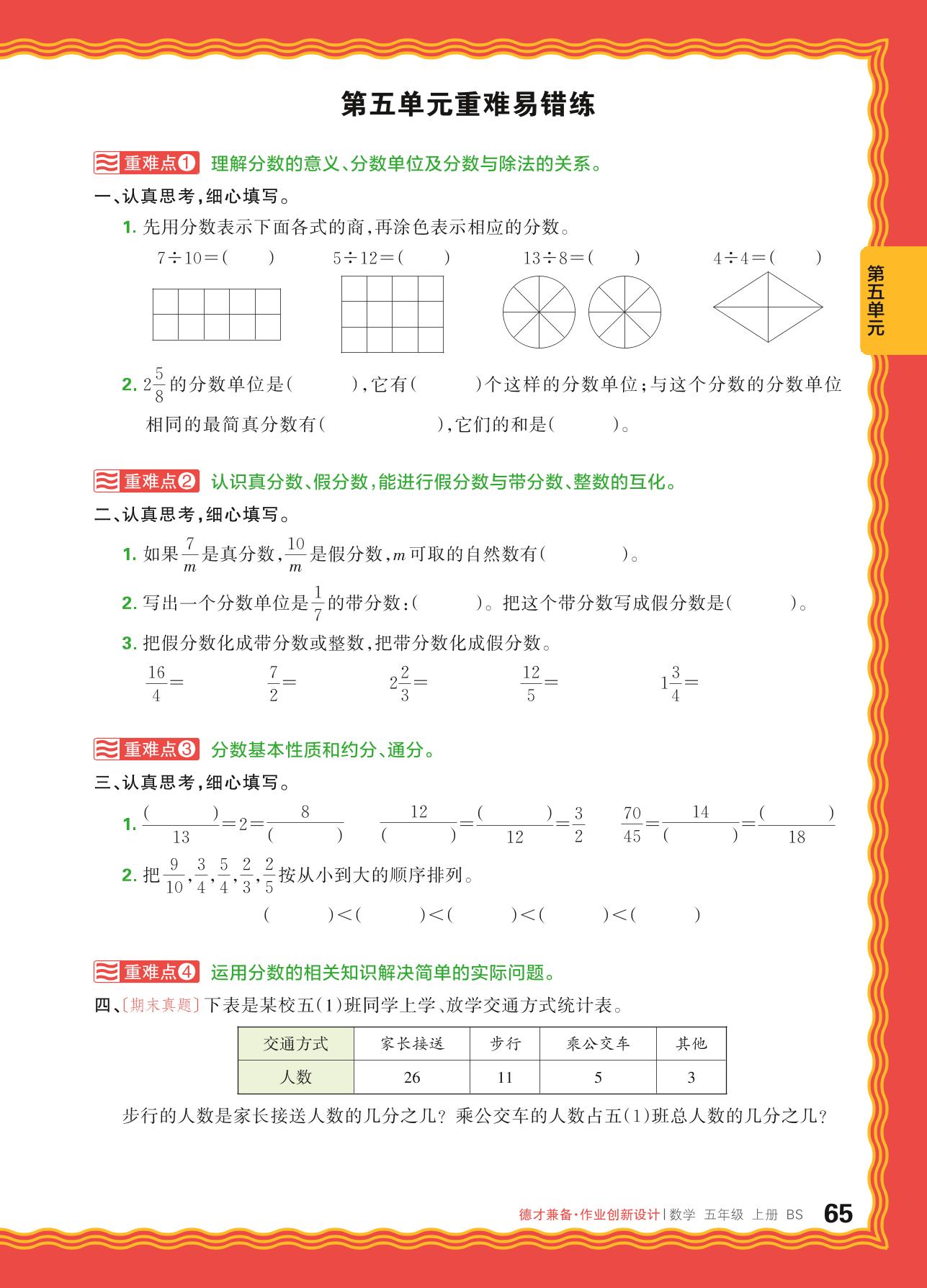 2024秋上册五年级数学北师版 第五单元重难易错练