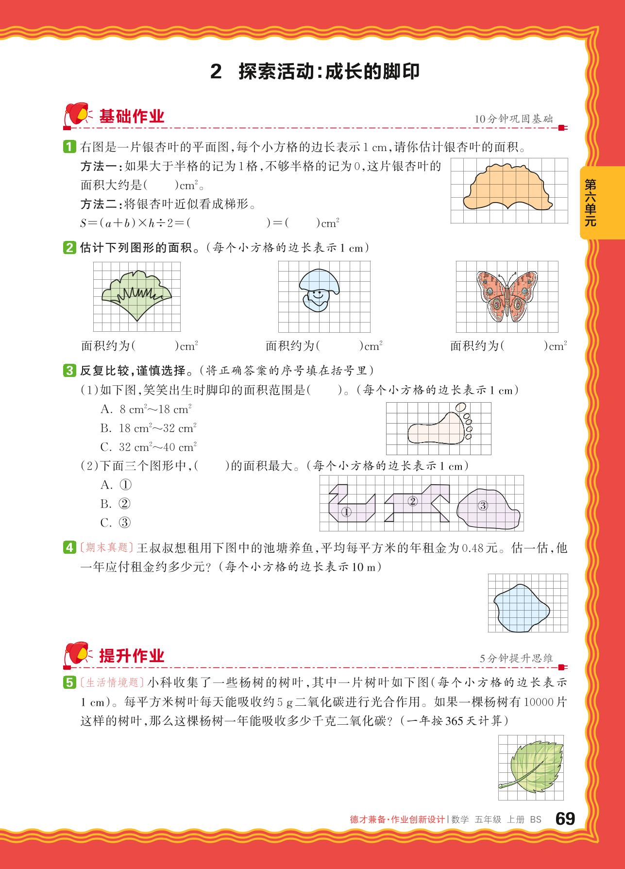 2024秋上册五年级数学北师版 第六单元 组合图形的面积——2. 探索活动:成长的脚印_R240819163123888