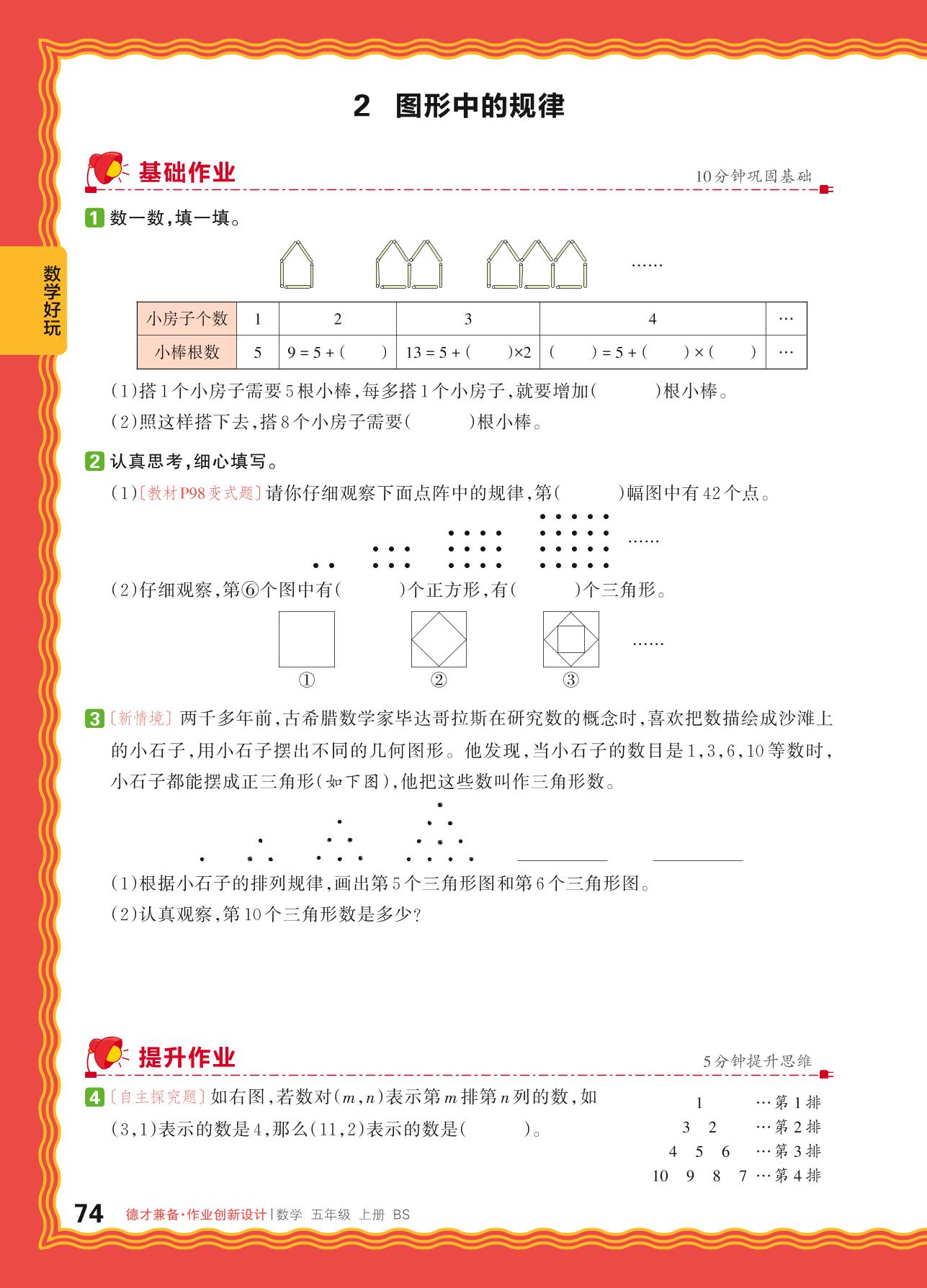 2024秋上册五年级数学北师版 数学好玩——2. 图形中的规律_R240819163125993