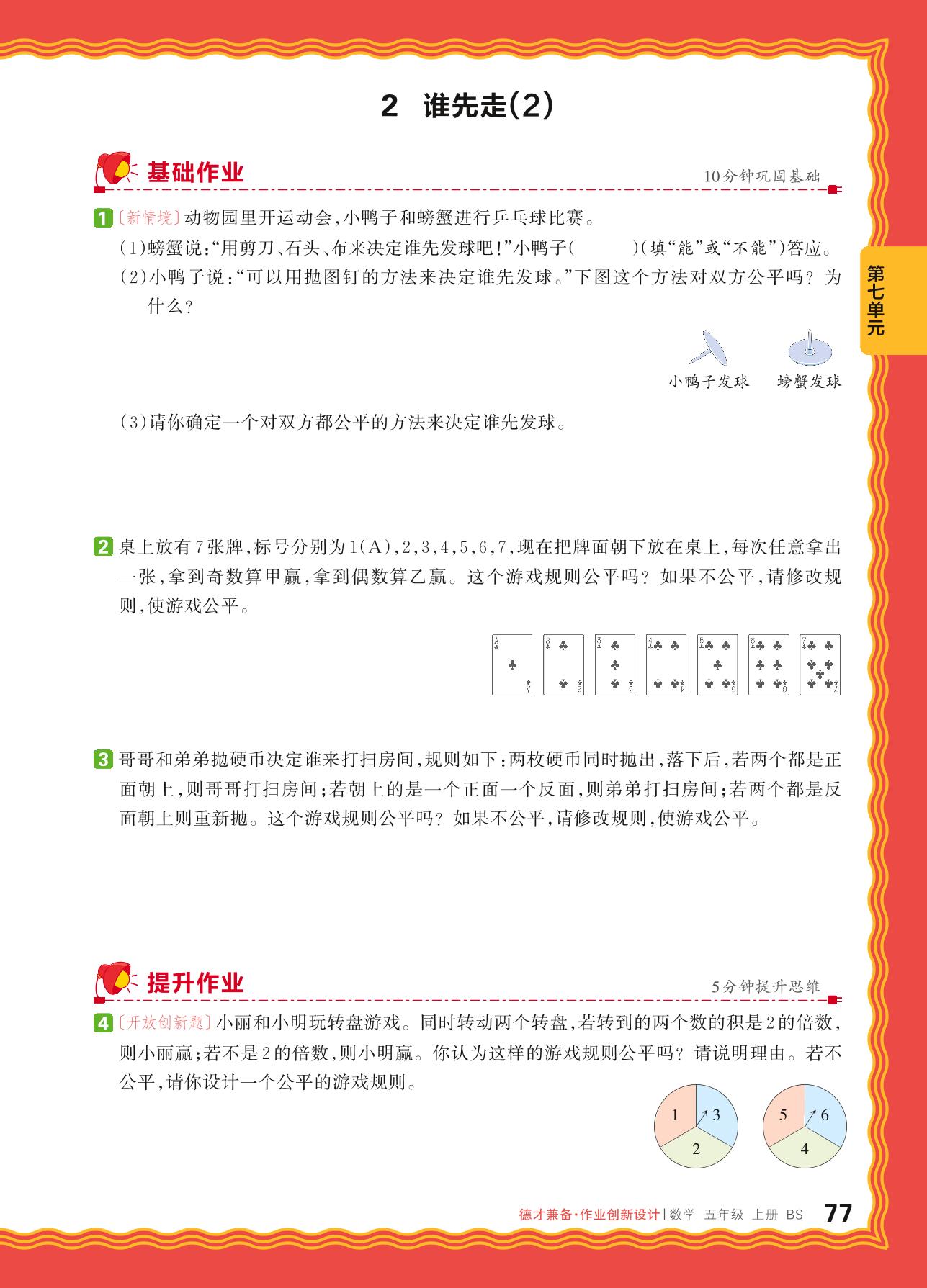 2024秋上册五年级数学北师版 第七单元 可能性——2. 谁先走(2)_R240819163126772