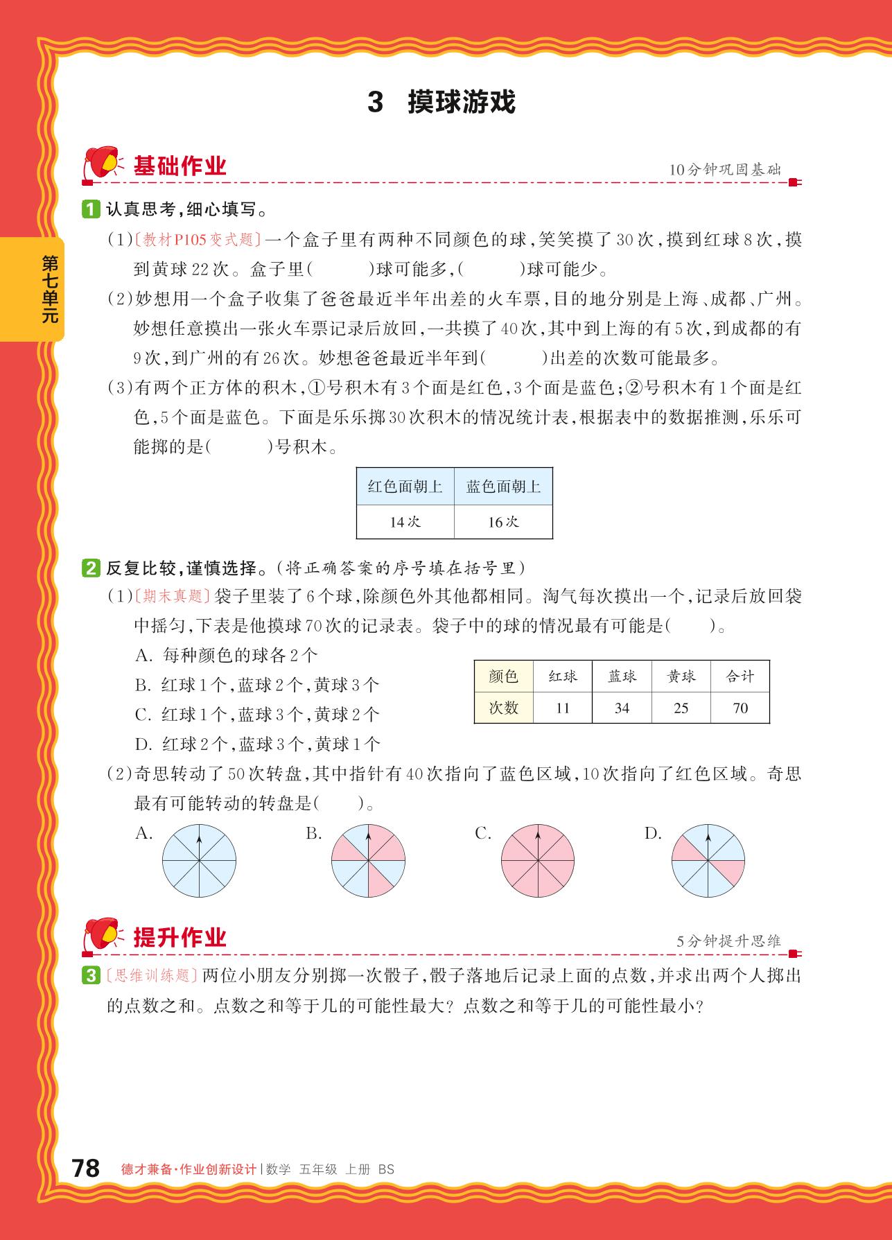 2024秋上册五年级数学北师版 第七单元 可能性——3. 摸球游戏_R240819163126534