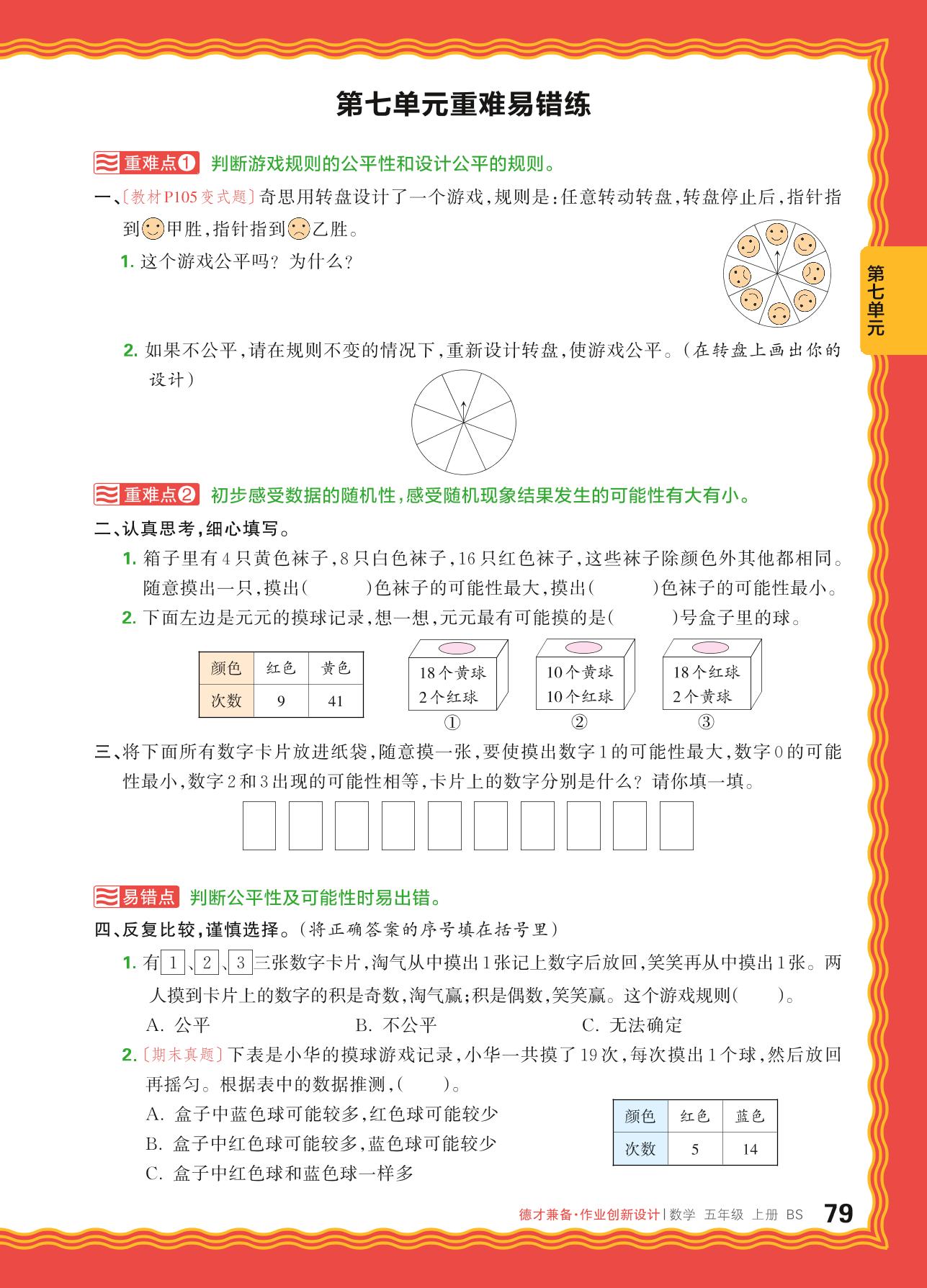 2024秋上册五年级数学北师版 第七单元重难易错练