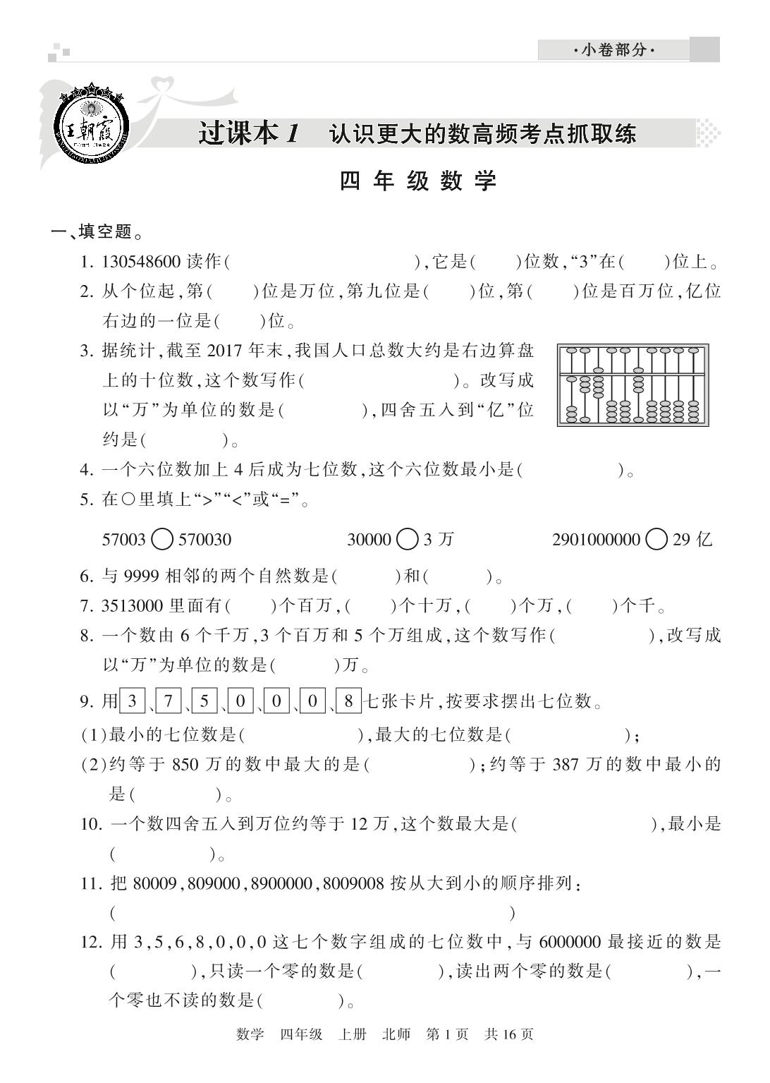 王朝霞期末过课本四年级上册数学(北师版)_R210804155727【0】