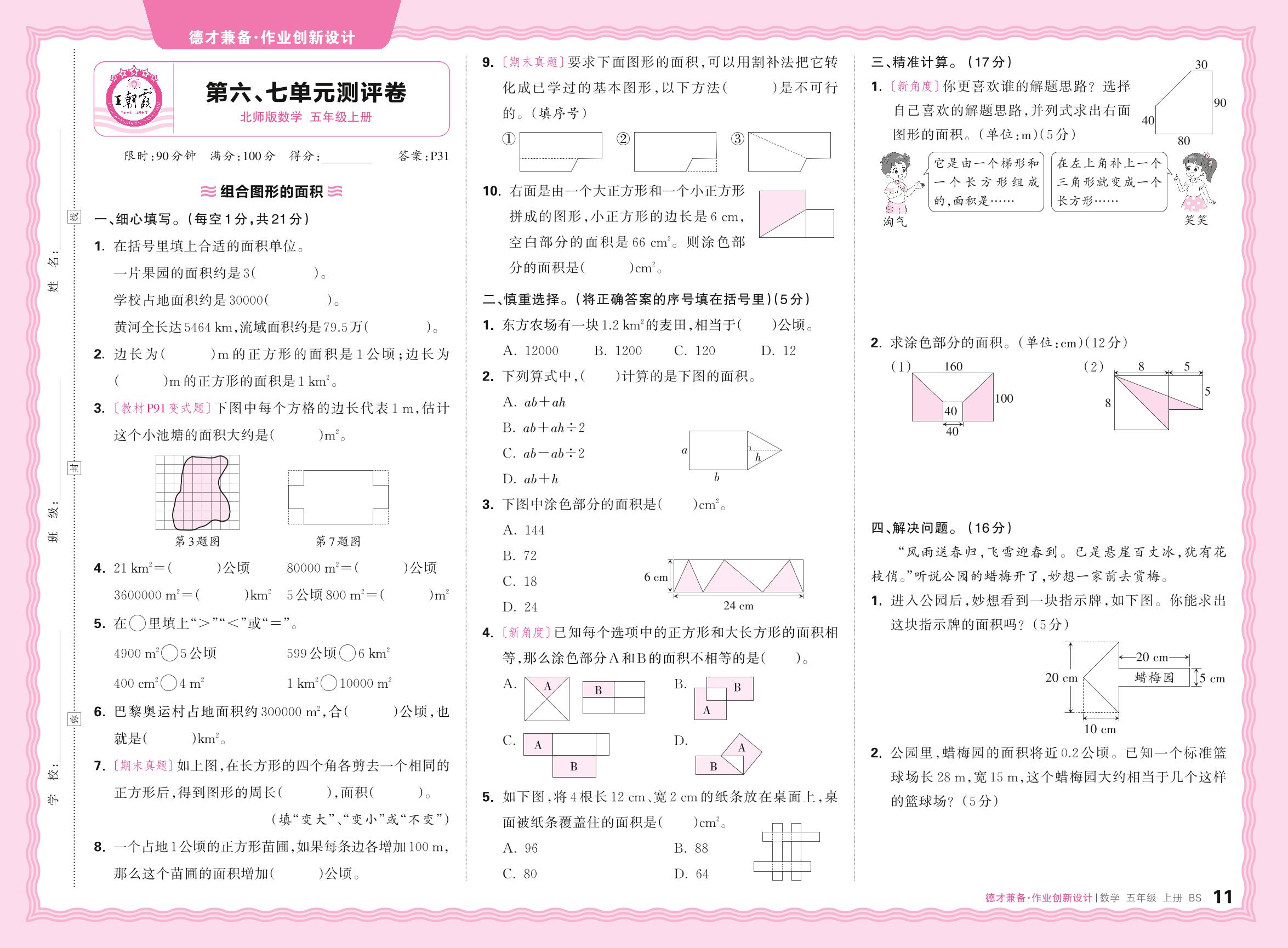 2024秋上册五年级数学北师版 第六、七单元测评卷
