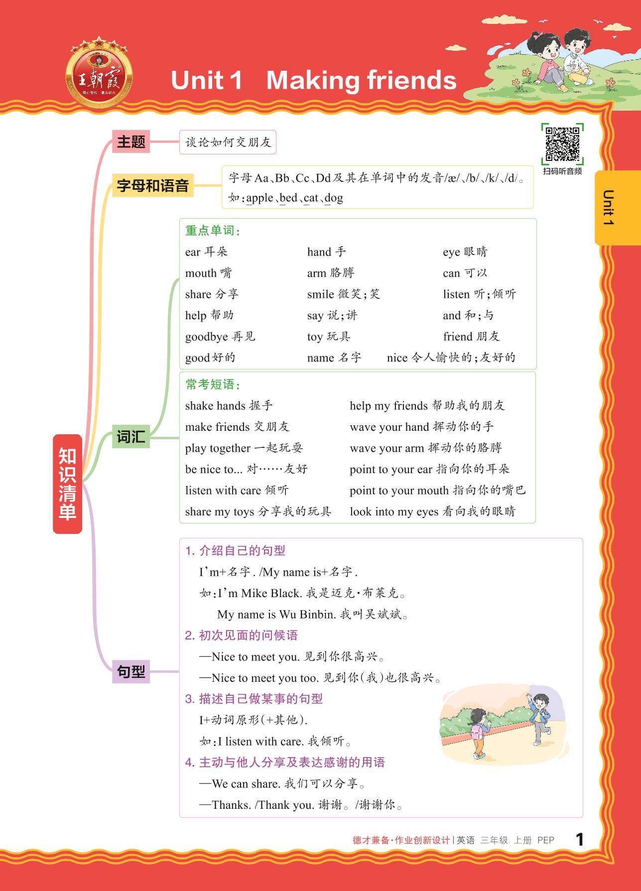 2024秋上册三年级英语人教PEP版(三起始) Unit 1 知识清单